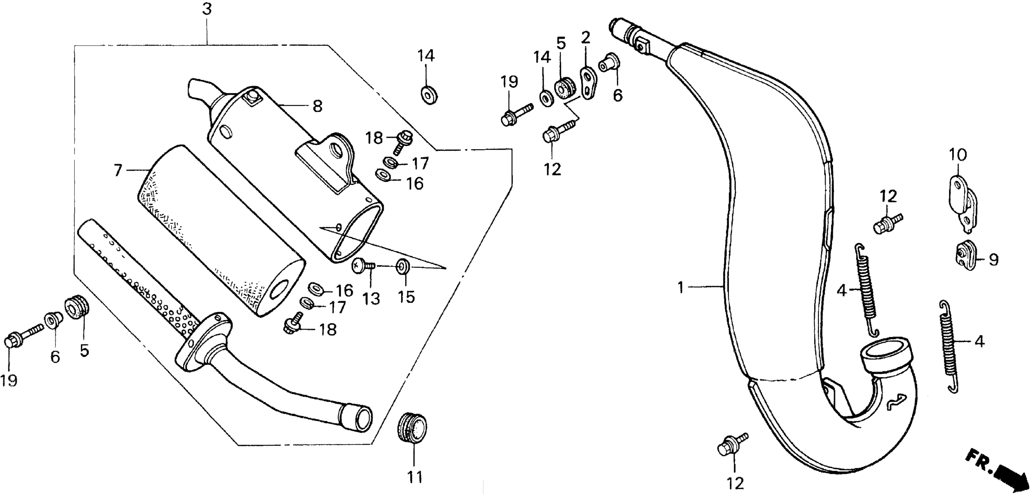Honda CR125RA (98) MOTORCYCLE, JPN, VIN# JH2JE010-WM900001 MUFFLER Diagram