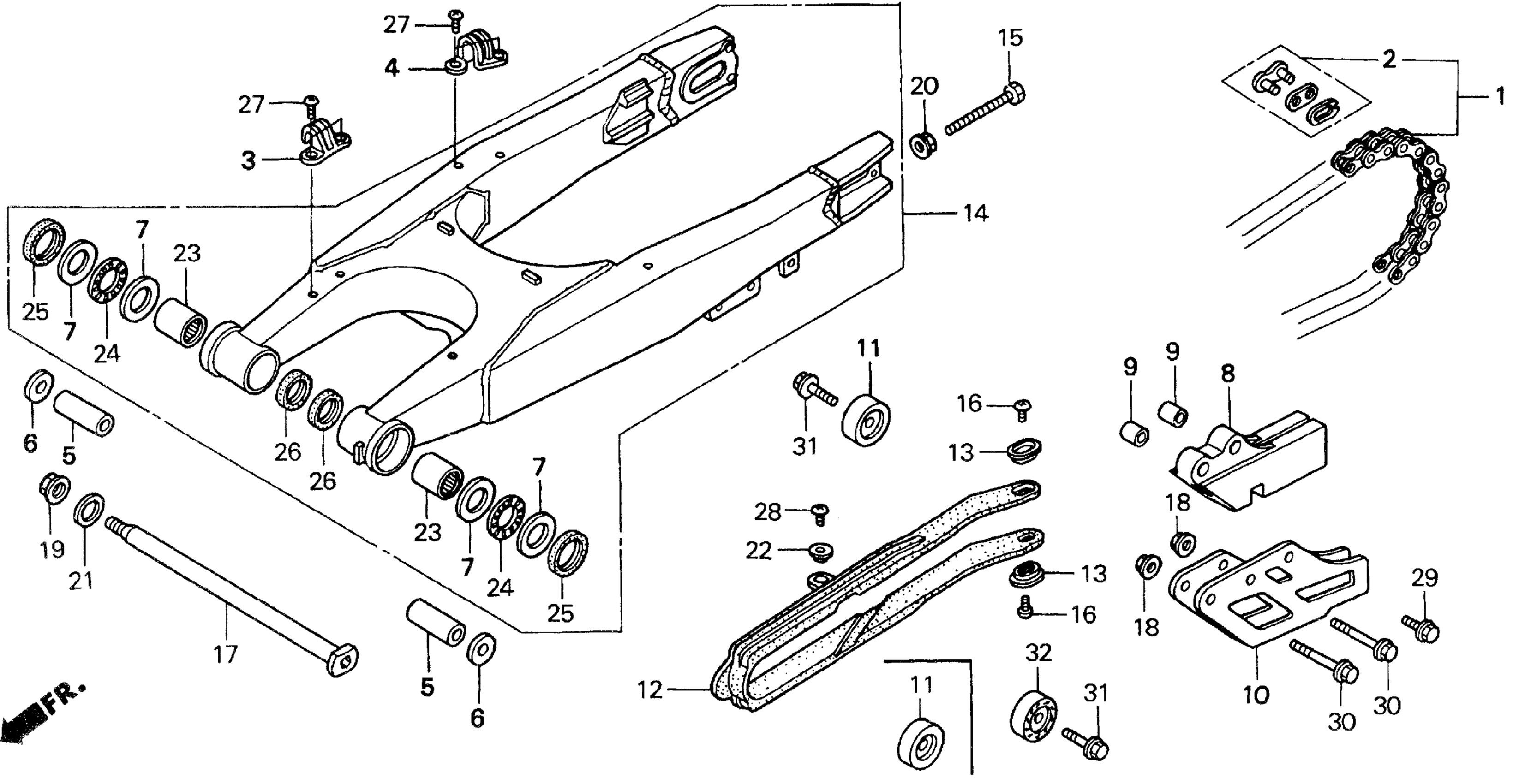 Honda CR125RA (98) MOTORCYCLE, JPN, VIN# JH2JE010-WM900001 SWINGARM Diagram