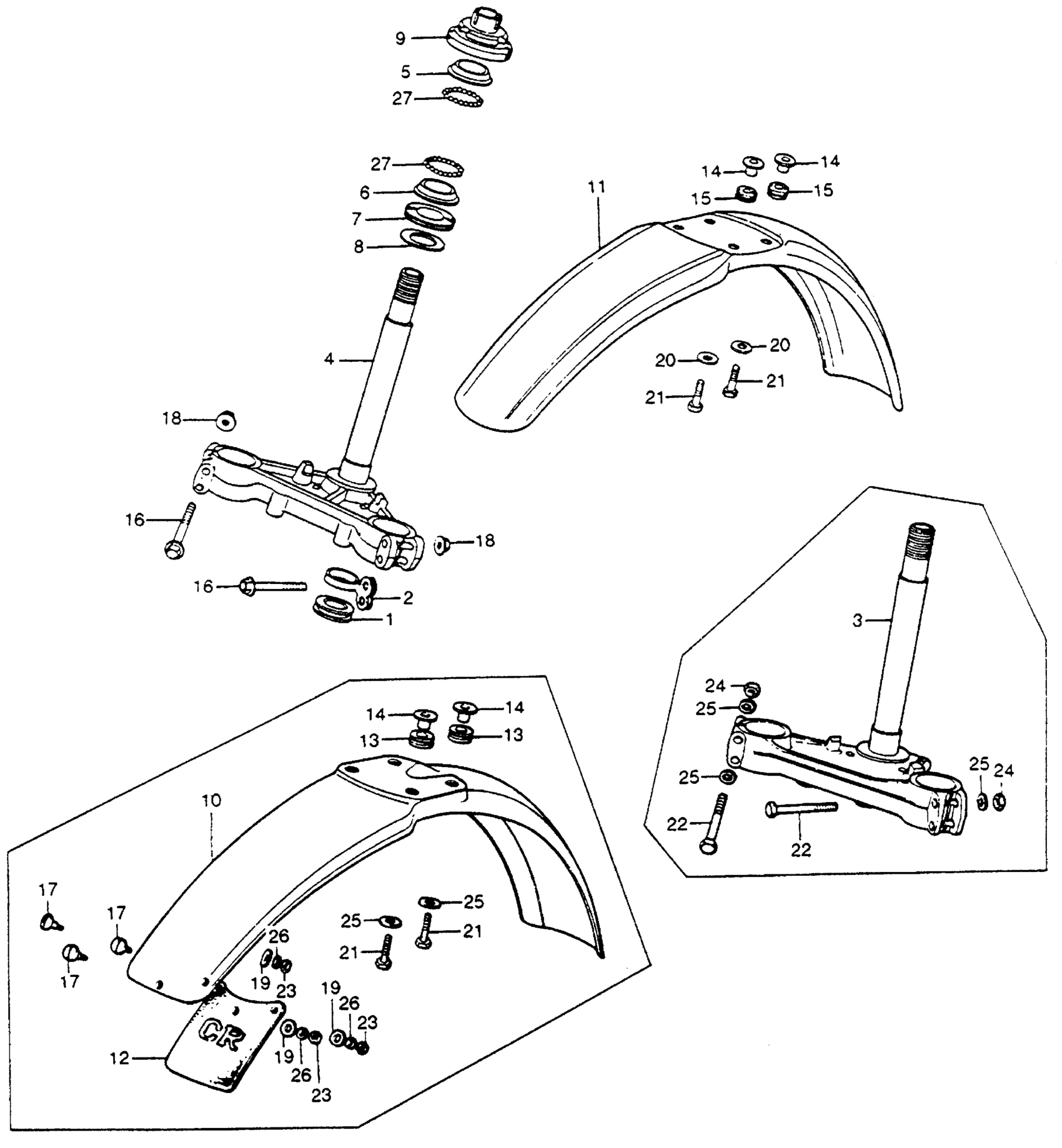 Honda CR250M1A MOTORCYCLE, JPN, VIN# CR250M-2000001 TO CR250M-2005434 STEERING STEM + FRONT FENDER Diagram