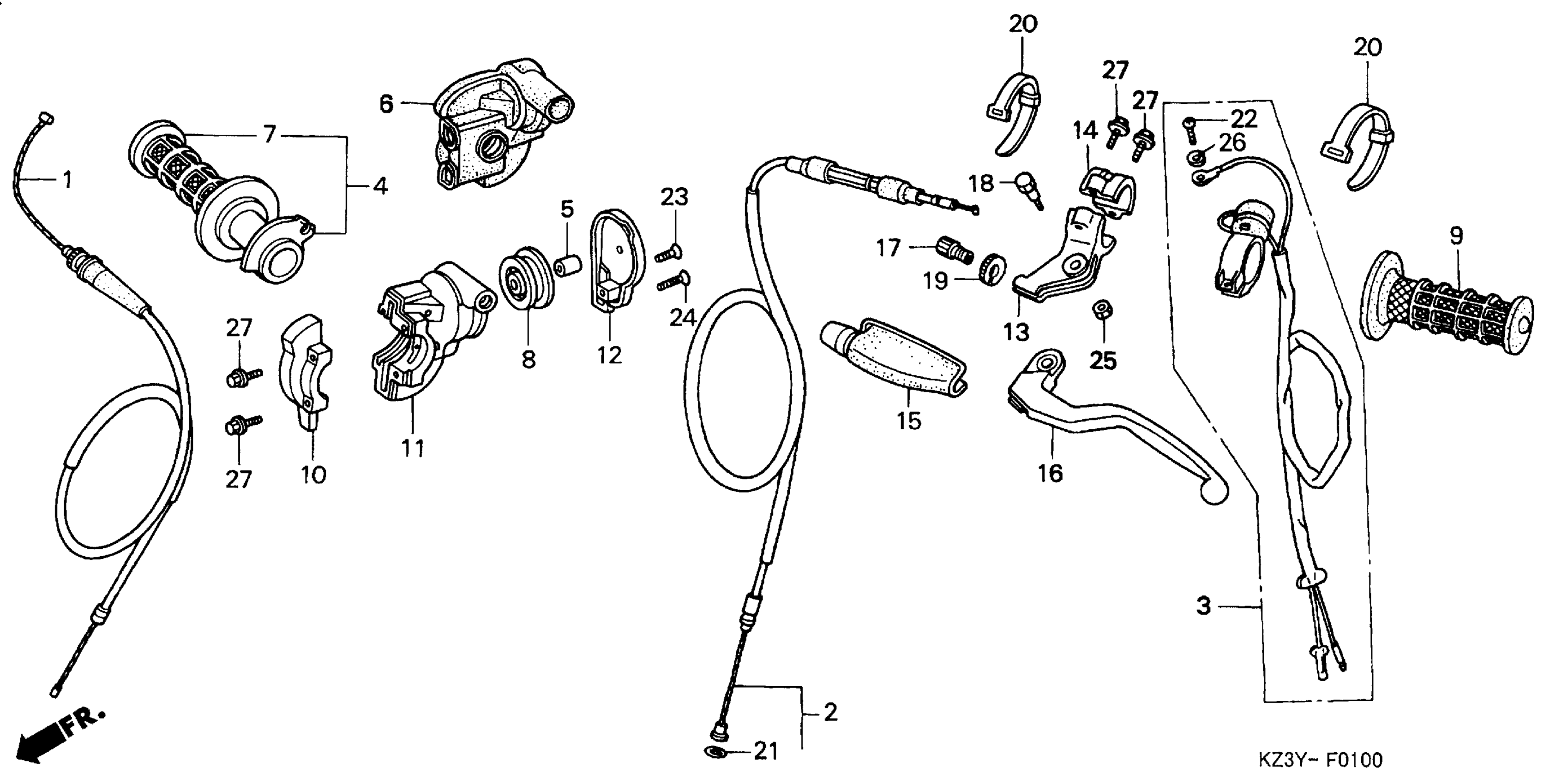 Honda CR250RA (01) MOTORCYCLE, JPN, VIN# JH2ME033-1M300001 HANDLE LEVER Diagram