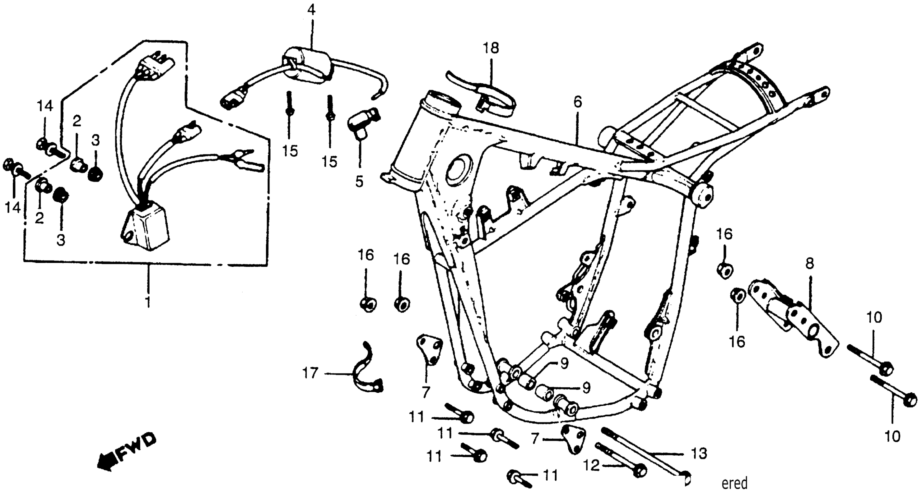 Honda CR250RA (80) ELSINORE, JPN, VIN# ME03-2001031 TO ME03-2016050 FRAME + IGNITION COIL 80 Diagram