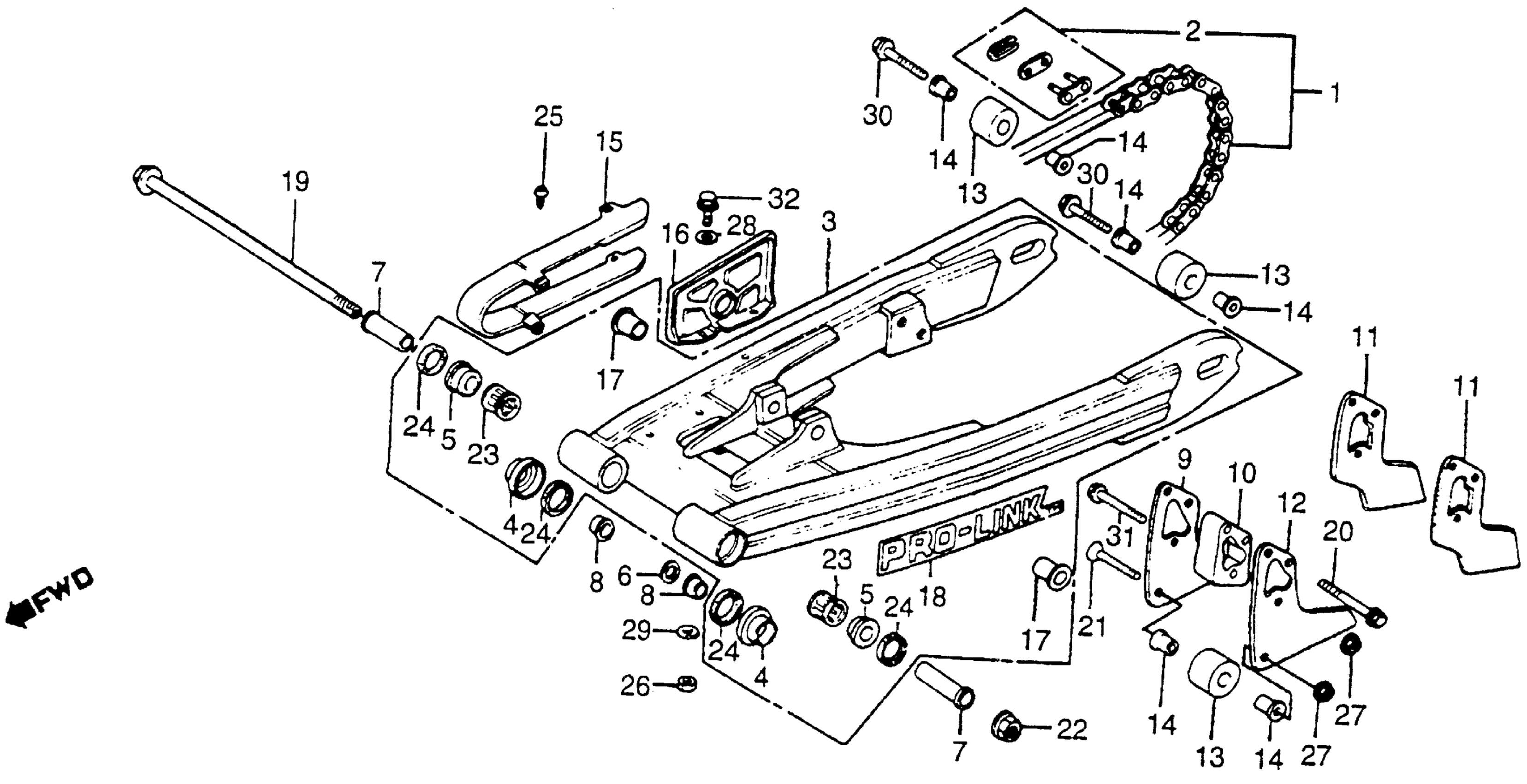 Honda CR250RA (81) ELSINORE, JPN, VIN# JH2ME030-BC300025 TO JH2ME030-BC305412 SWINGARM + DRIVE CHAIN 81 Diagram