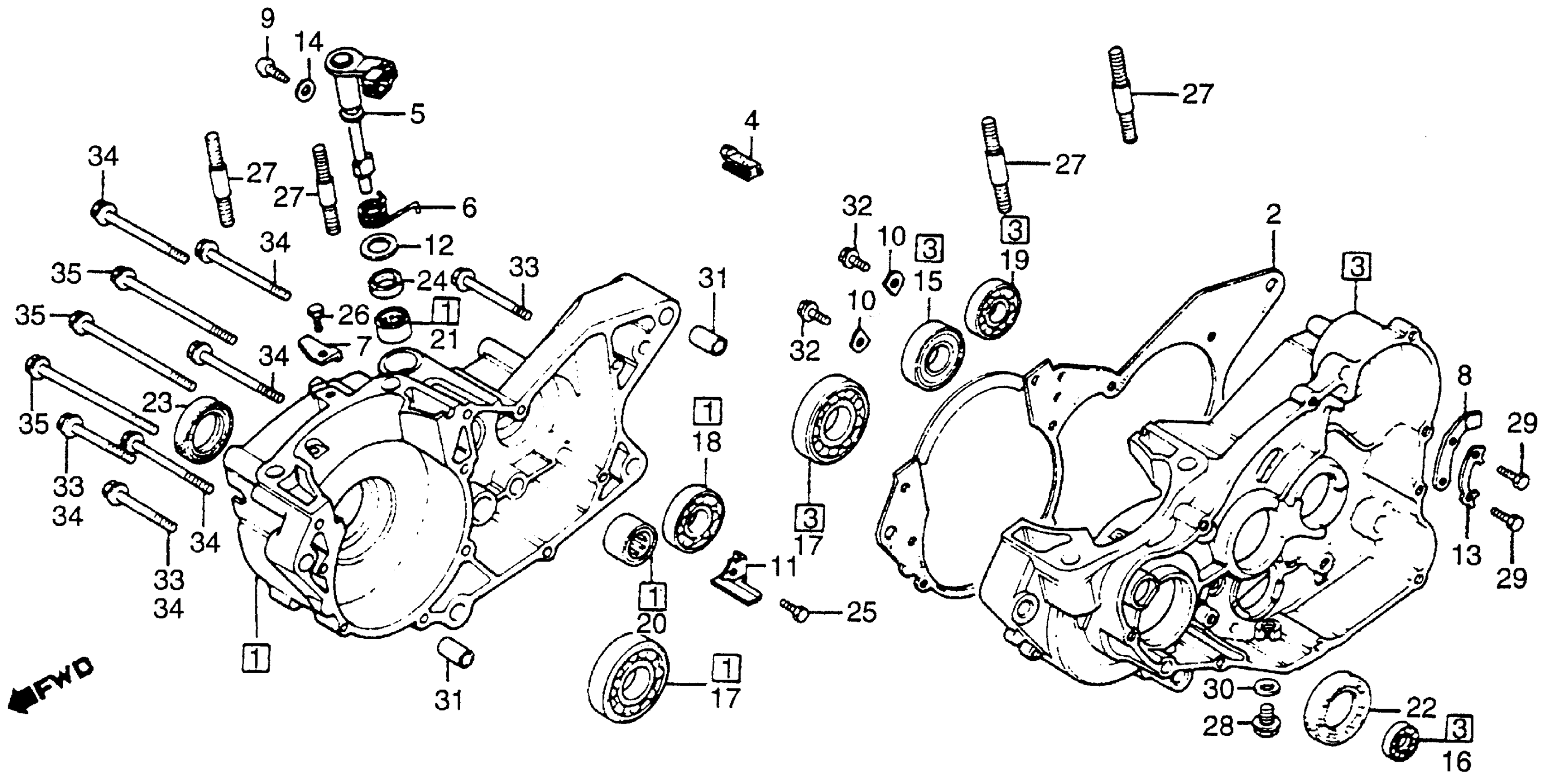 Honda CR250RA (83) MOTORCYCLE, JPN, VIN# JH2ME030-DC500016 TO JH2ME030-DC505429 CRANKCASE Diagram