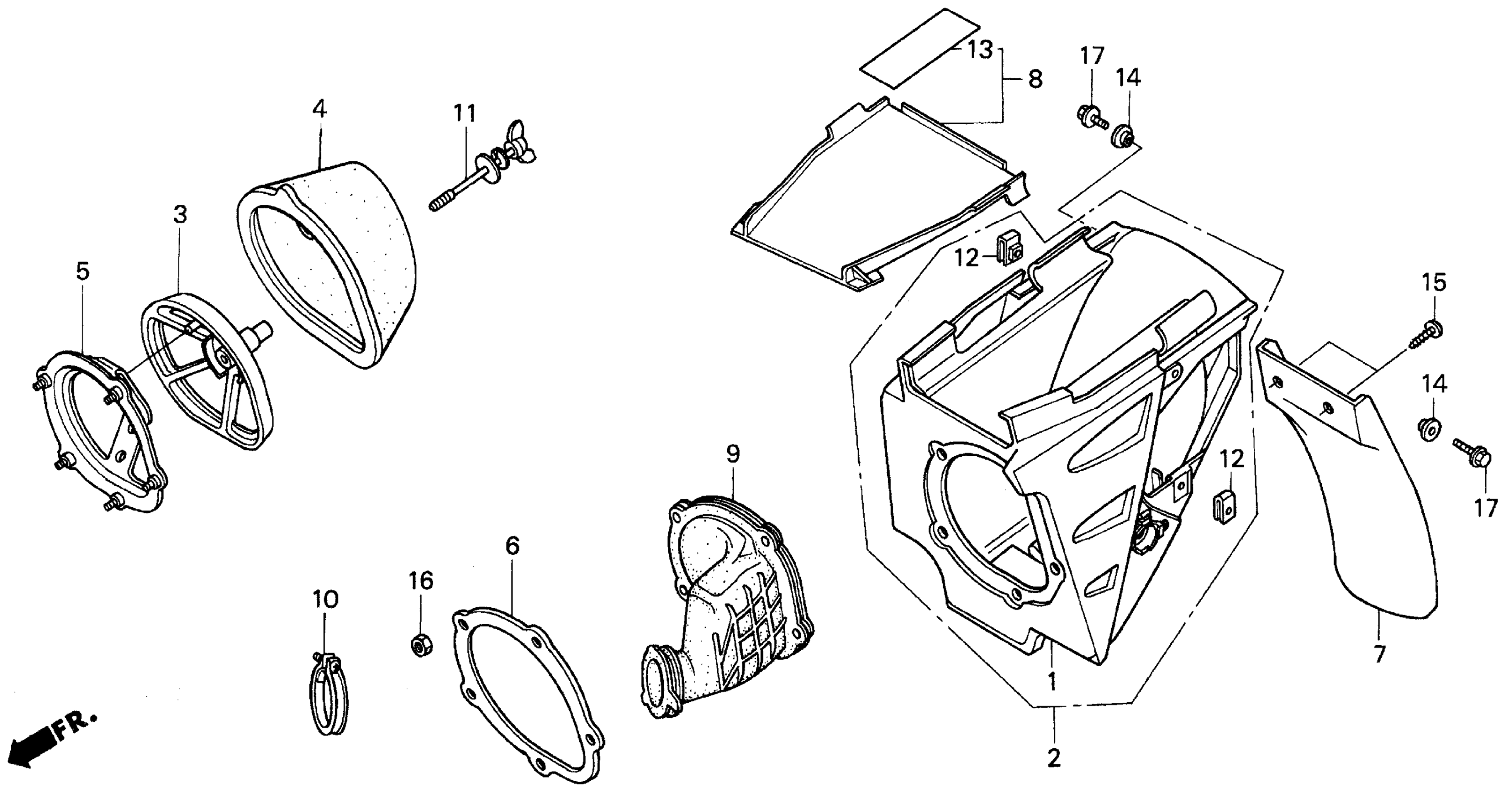 Honda CR250RA (95) MOTORCYCLE, JPN, VIN# JH2ME030-SM700007 AIR CLEANER 92-96 Diagram