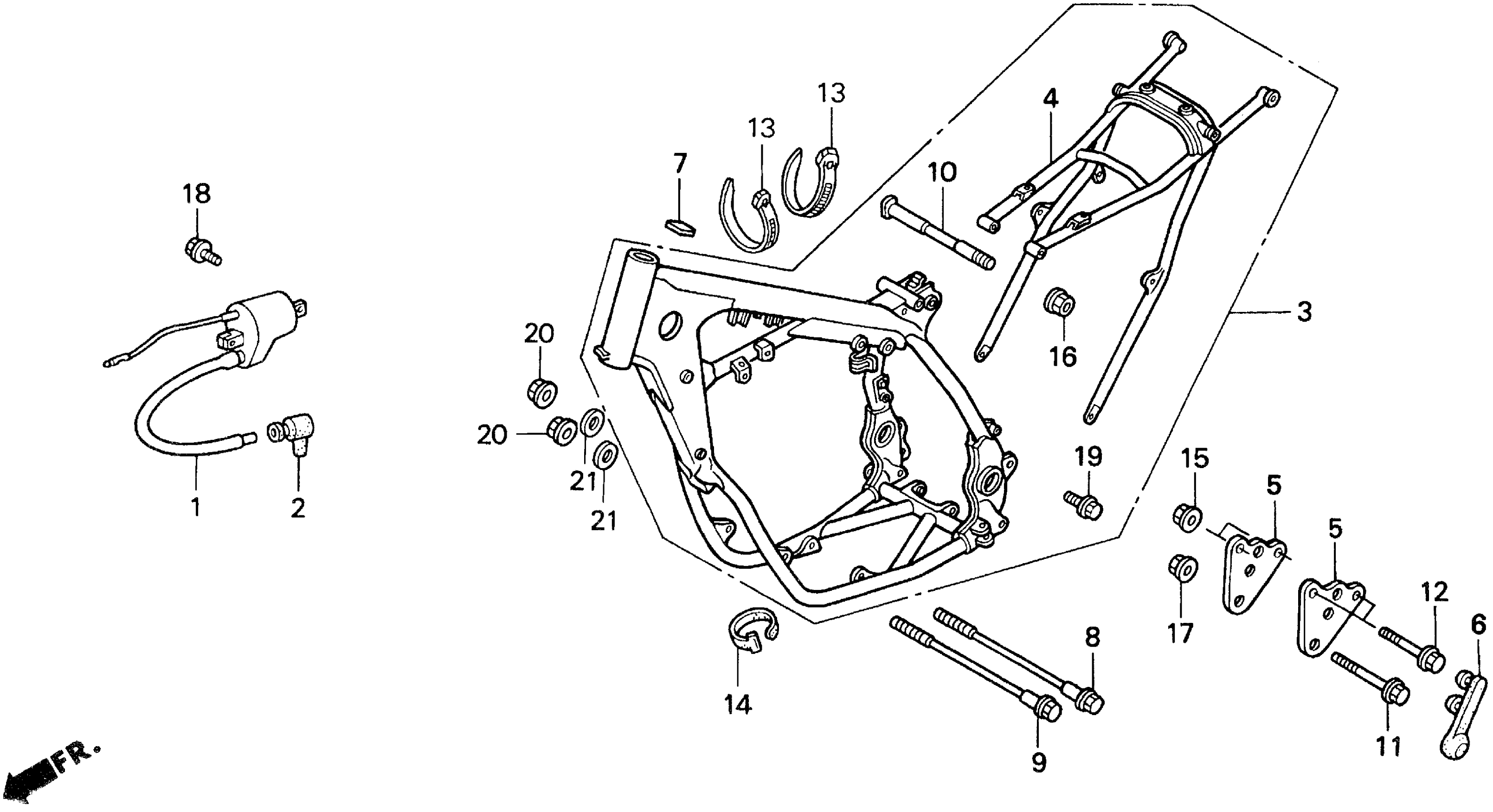 Honda CR500RA (00) MOTORCYCLE, JPN, VIN# JH2PE023-YM900001 FRAME Diagram