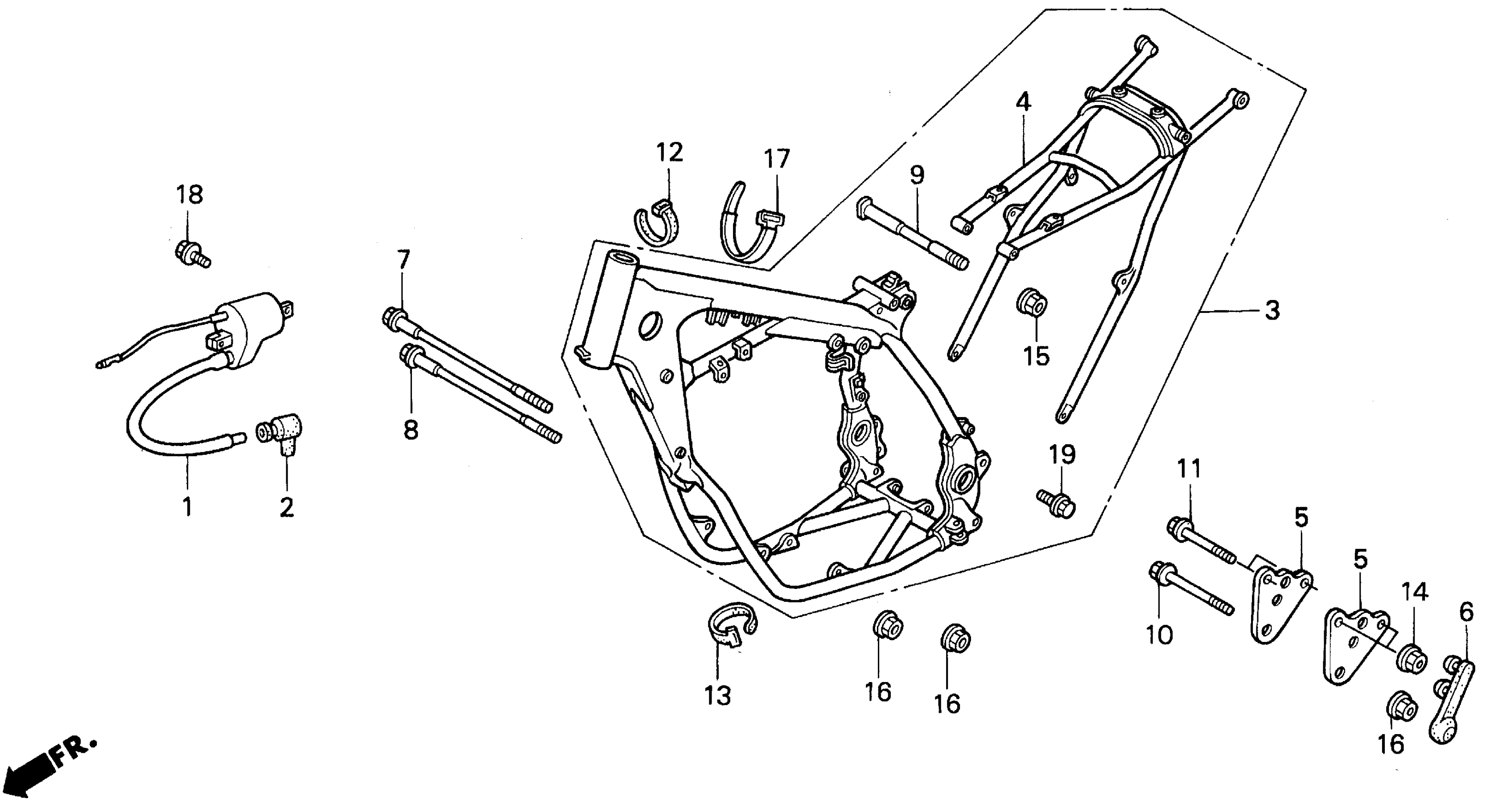 Honda CR500RA (91) MOTORCYCLE, JPN, VIN# JH2PE020-MM000006 TO JH2PE020-MM001974 FRAME 90-91 Diagram