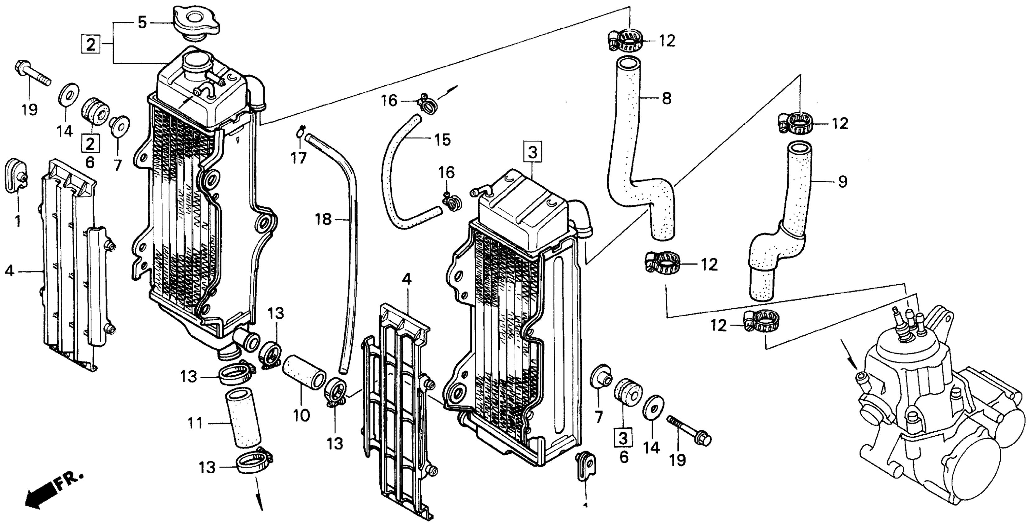 Honda CR500RA (97) MOTORCYCLE, JPN, VIN# JH2PE020-VM600001 RADIATOR Diagram