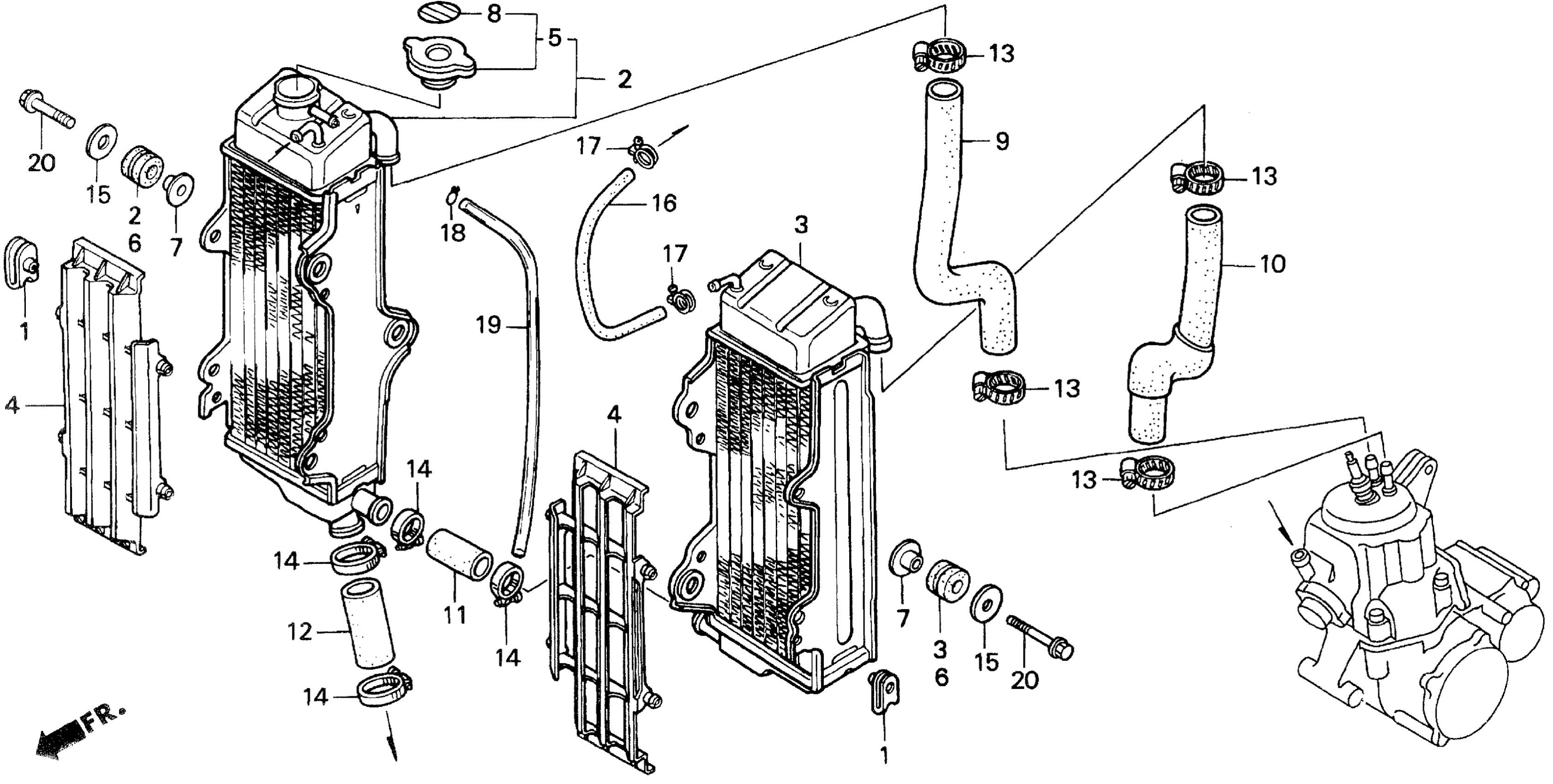 Honda CR500RA (99) MOTORCYCLE, JPN, VIN# JH2PE023-XM800001 RADIATOR Diagram