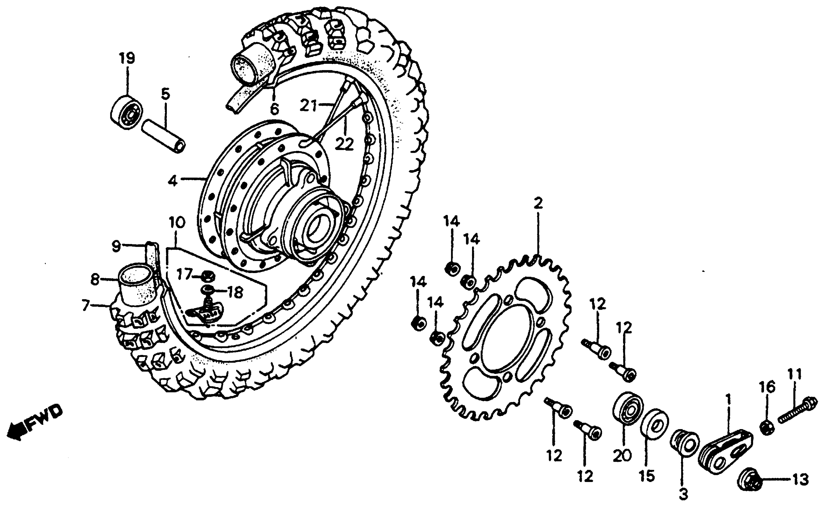Honda CR80RA (82) MOTORCYCLE, JPN, VIN# JH2HE020-CK200015 TO JH2HE020-CK205311 REAR WHEEL 82-83 Diagram