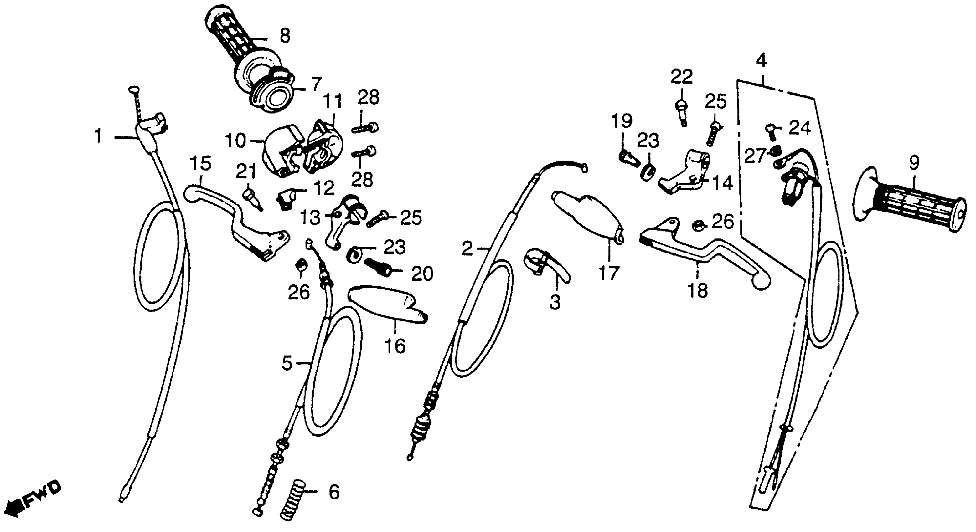 Honda CR80RA (84) MOTORCYCLE, JPN, VIN# JH2HE040-EK100009 CONTROL LEVERS + SWITCHES + CABLES Diagram
