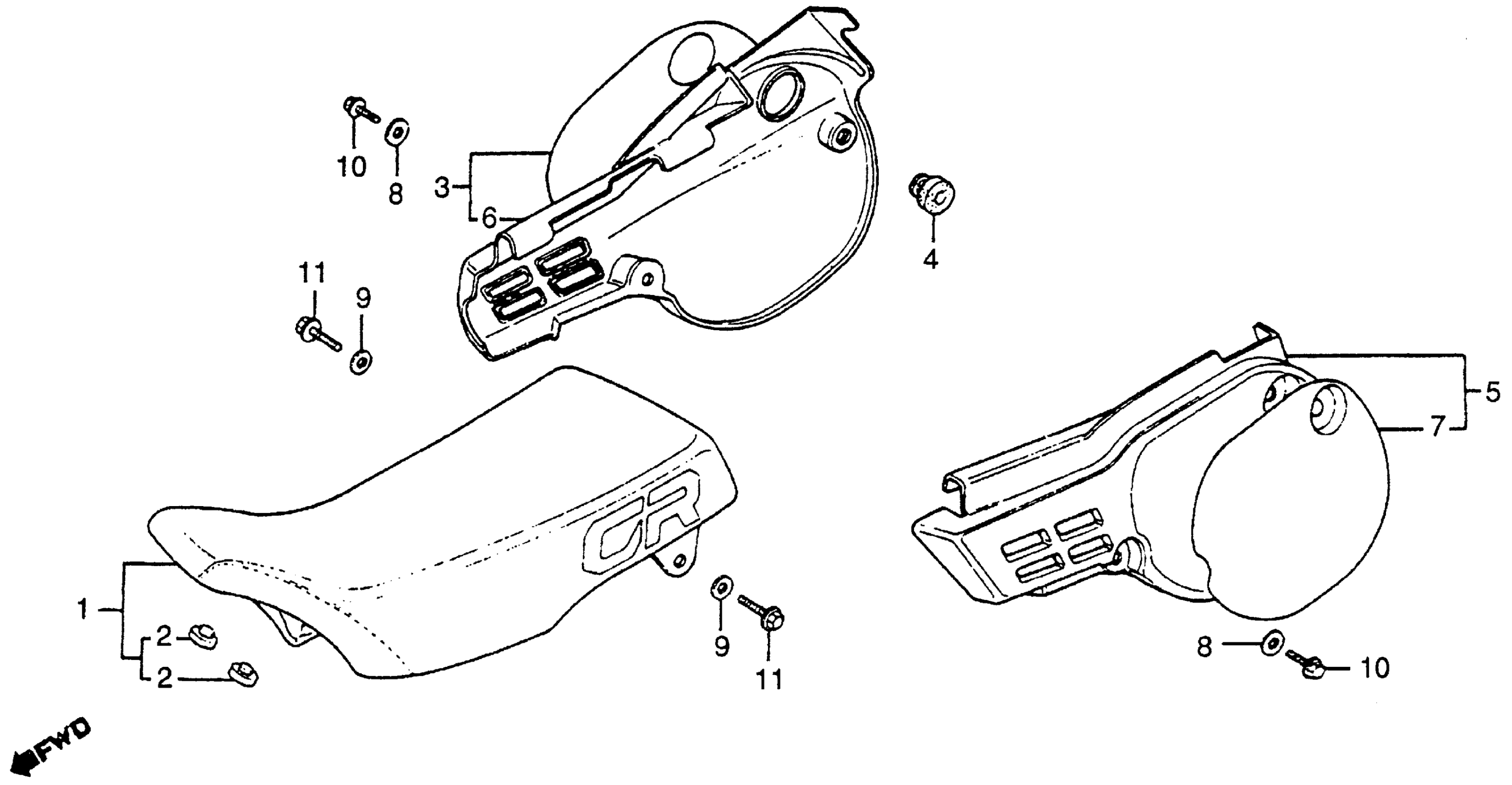 Honda CR80RA (84) MOTORCYCLE, JPN, VIN# JH2HE040-EK100009 SEAT + SIDE COVER Diagram