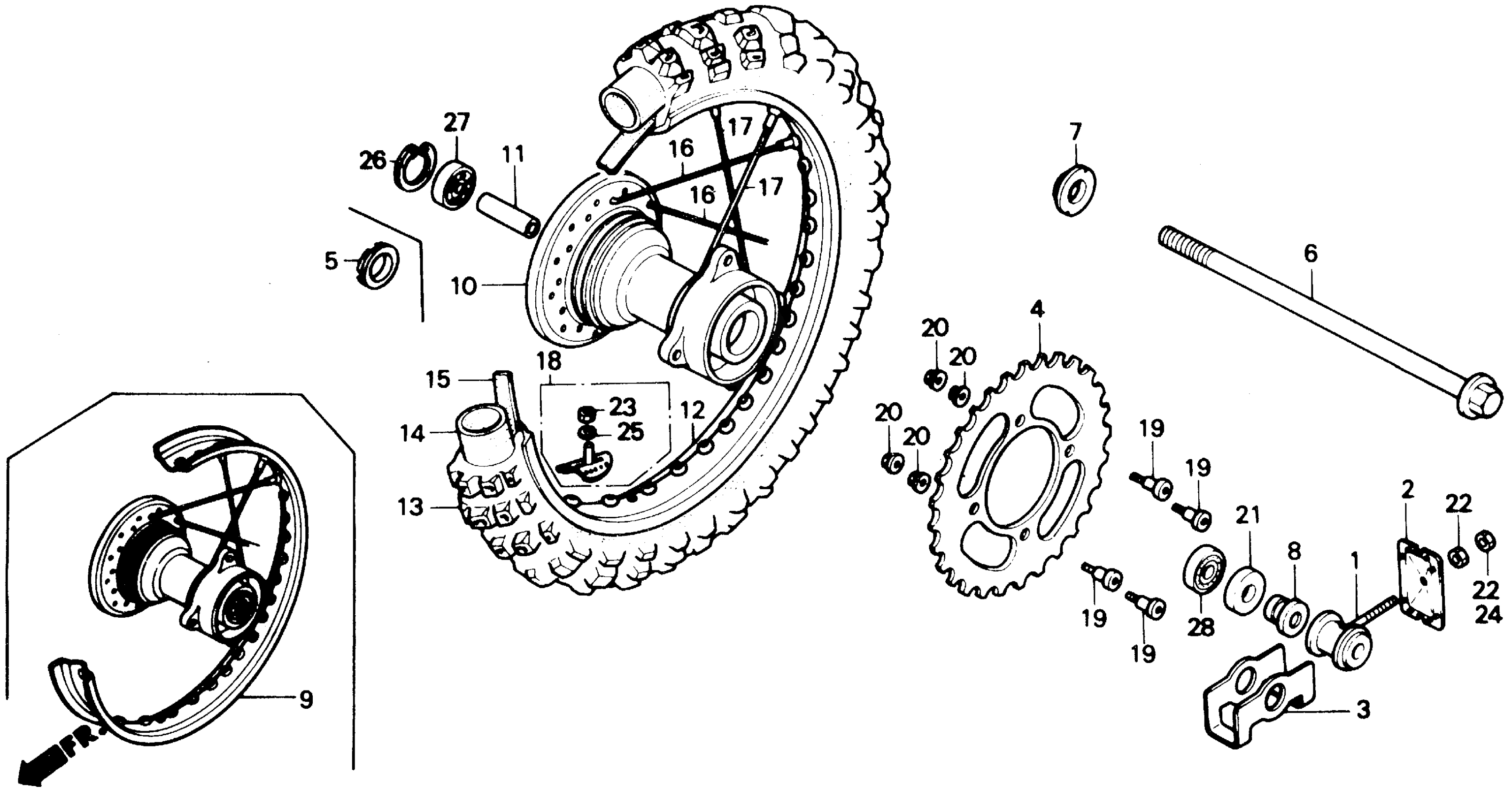 Honda CR80RA (85) MOTORCYCLE, JPN, VIN# JH2HE040-FK200010 TO JH2HE040-FK206049 REAR WHEEL Diagram