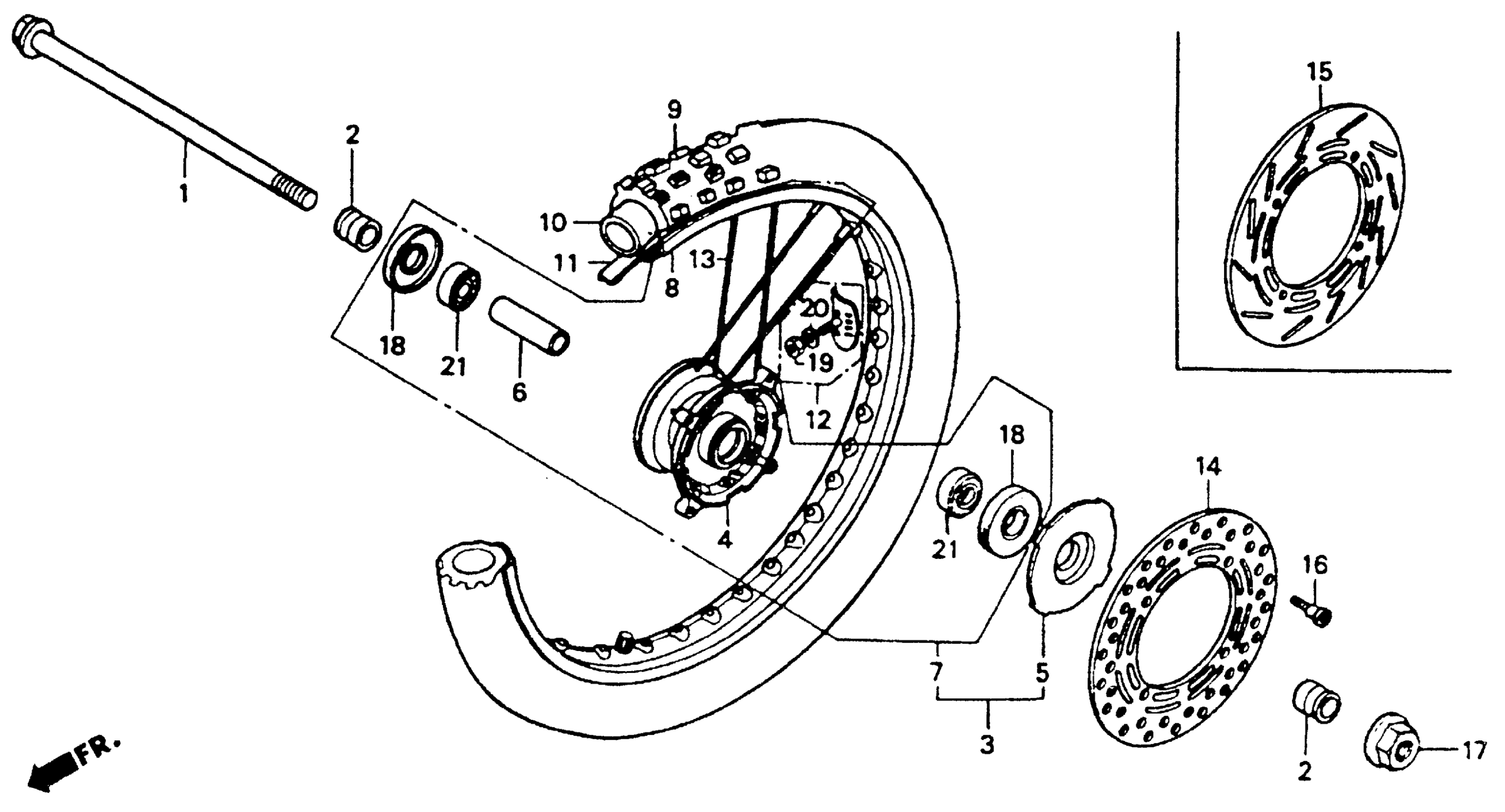 Honda CR80RA (91) MOTORCYCLE, JPN, VIN# JH2HE040-MK800001 TO JH2HE040-MK801513 FRONT WHEEL Diagram