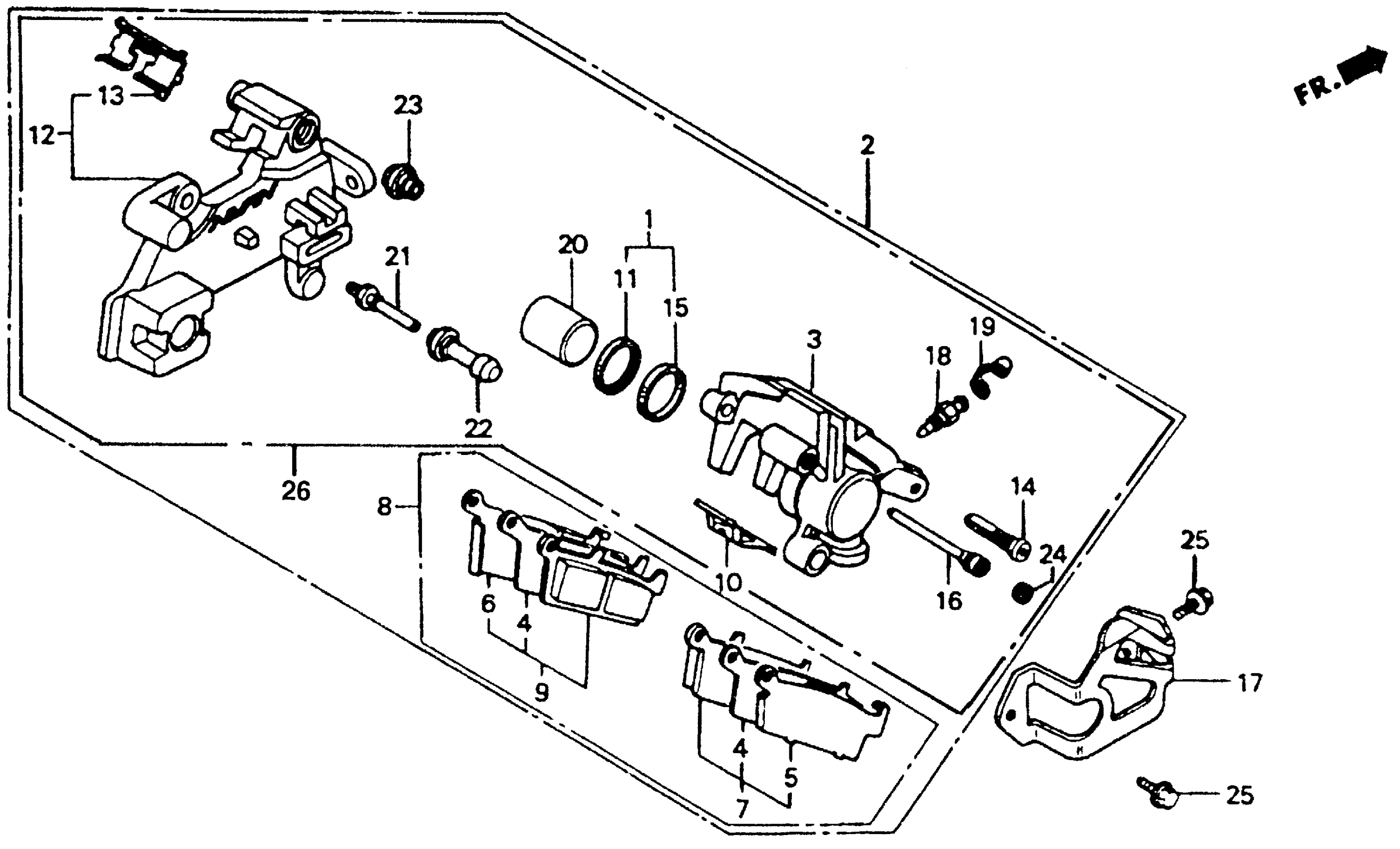 Honda CR80RA (94) MOTORCYCLE, JPN, VIN# JH2HE040-RK100001 TO JH2HE040-RK101555 REAR BRAKE CALIPER 92-95 Diagram