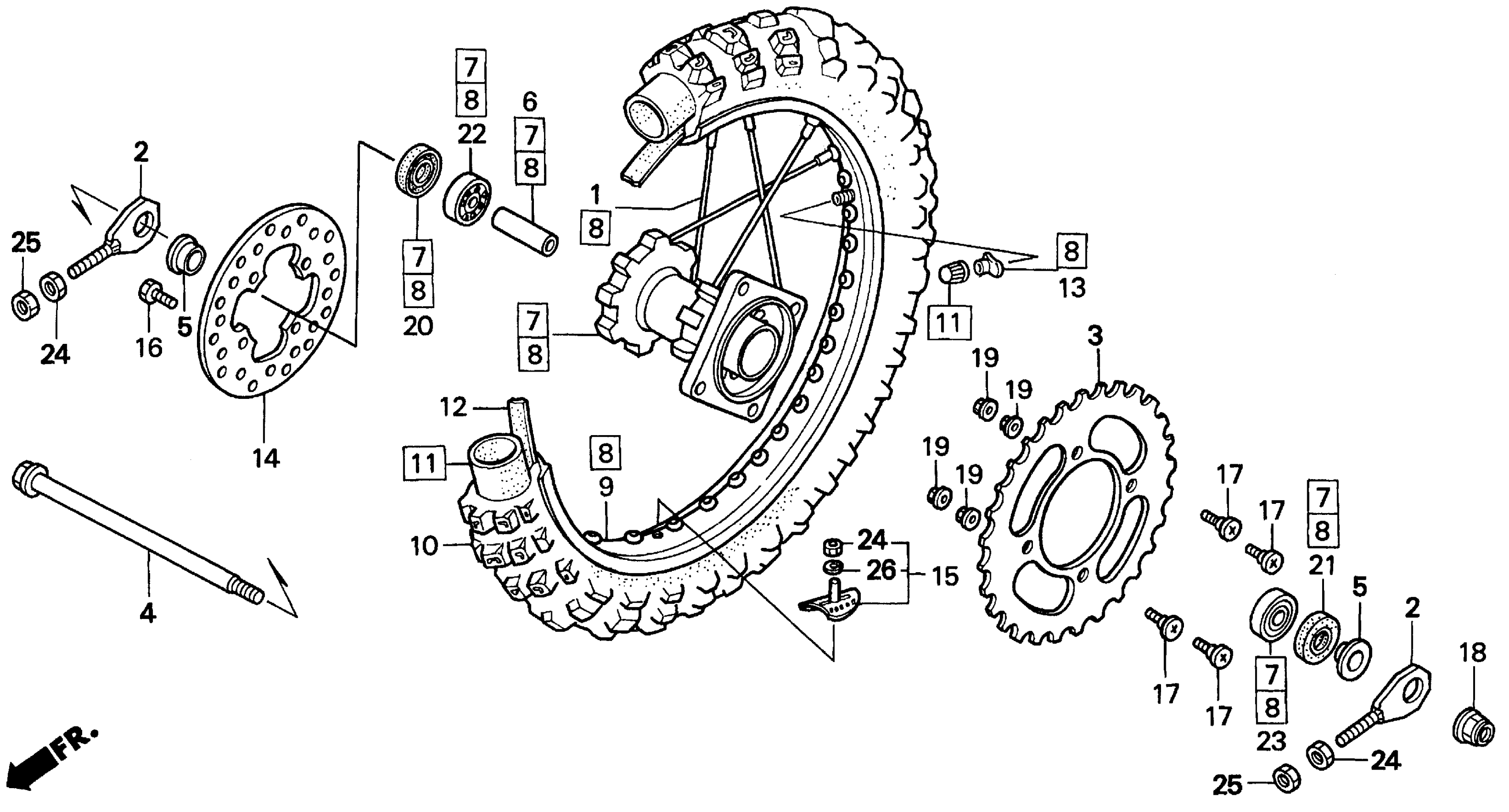 Honda CR80RA (97) MOTORCYCLE, JPN, VIN# JH2HE040-VK400004 REAR WHEEL Diagram