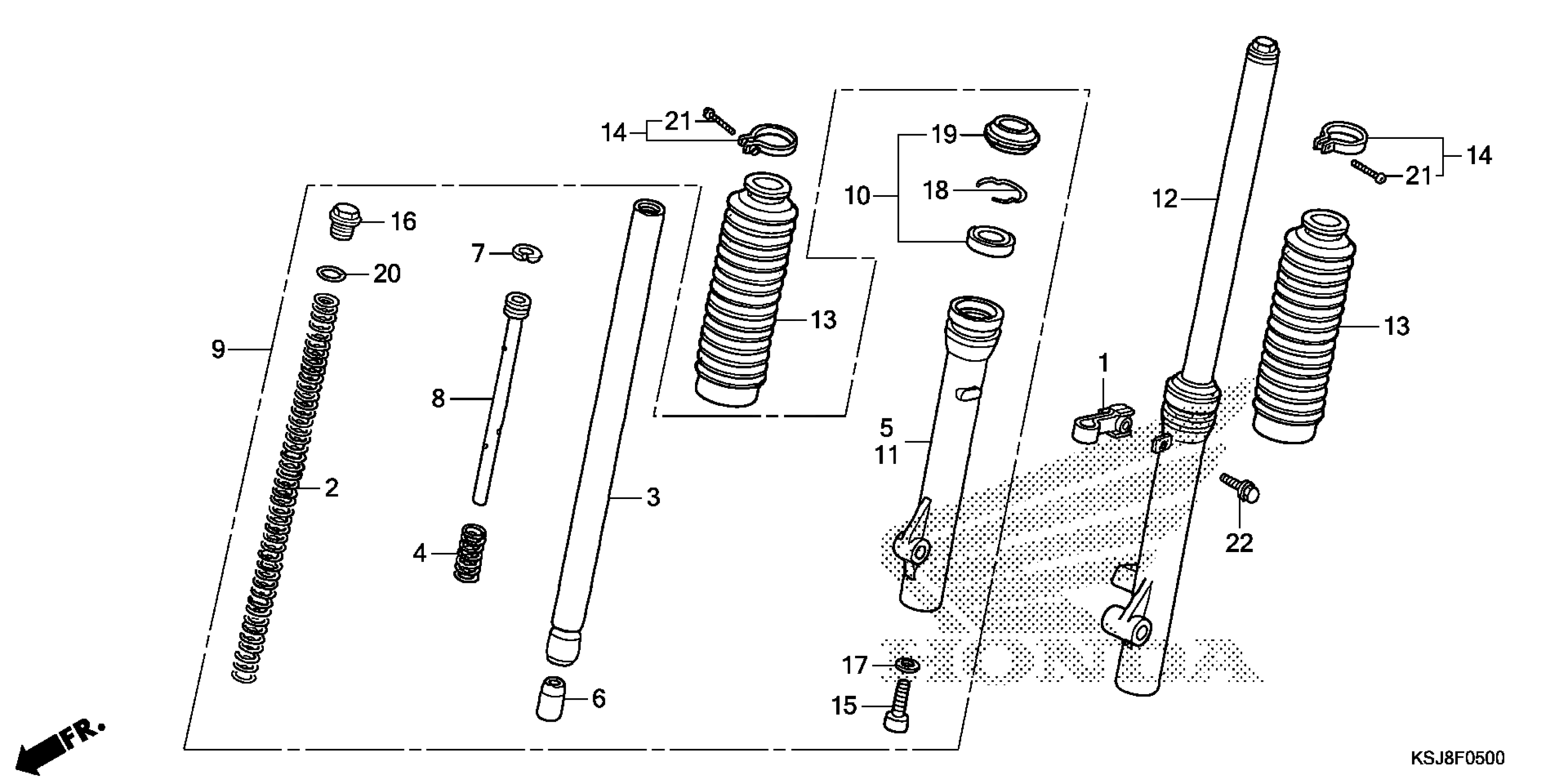 Honda CRF100FAC (13) CRF100F, JPN, VIN# JH2HE031-DK500001 FRONT FORK Diagram