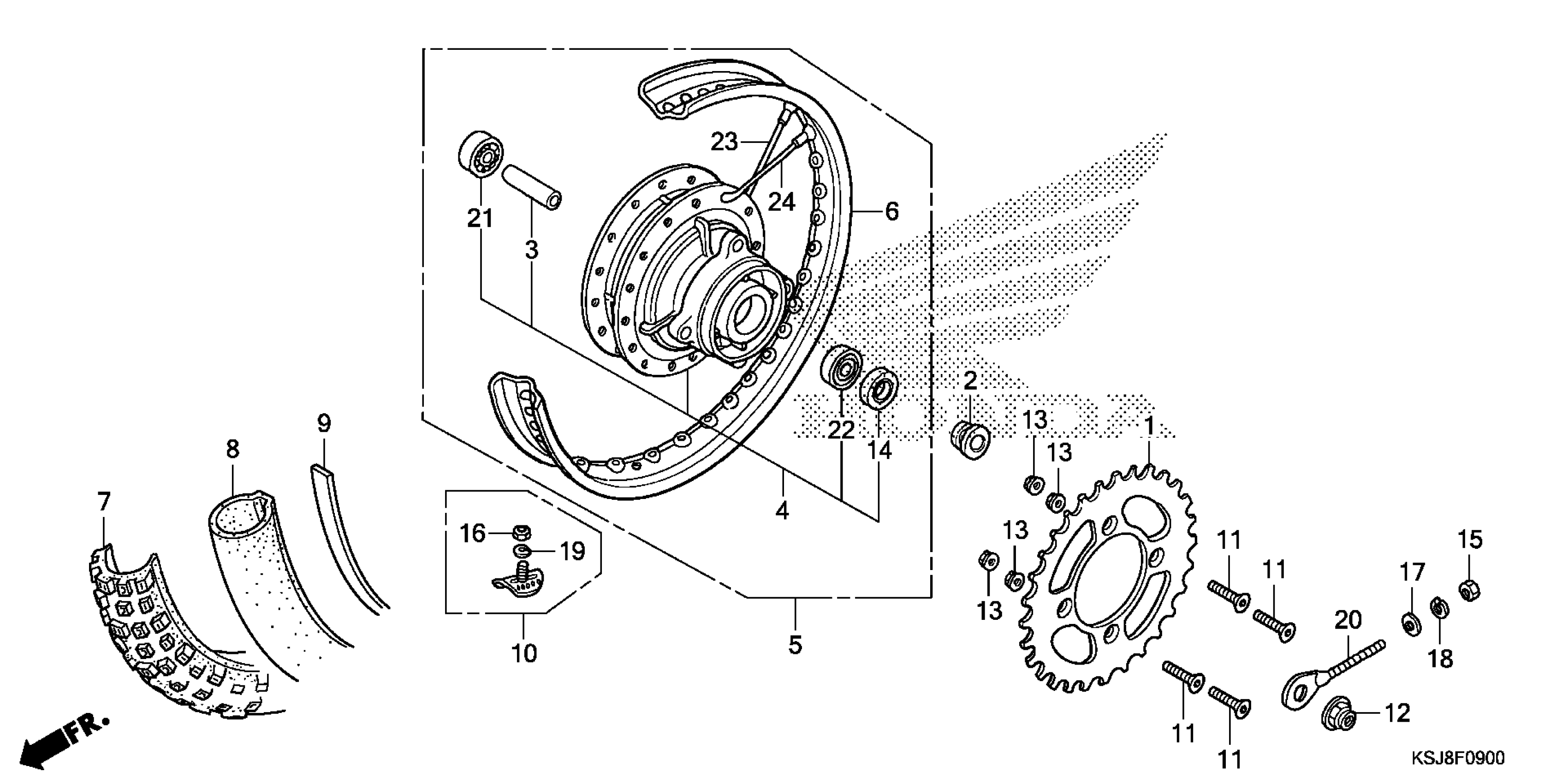 Honda CRF100FAC (13) CRF100F, JPN, VIN# JH2HE031-DK500001 REAR WHEEL Diagram