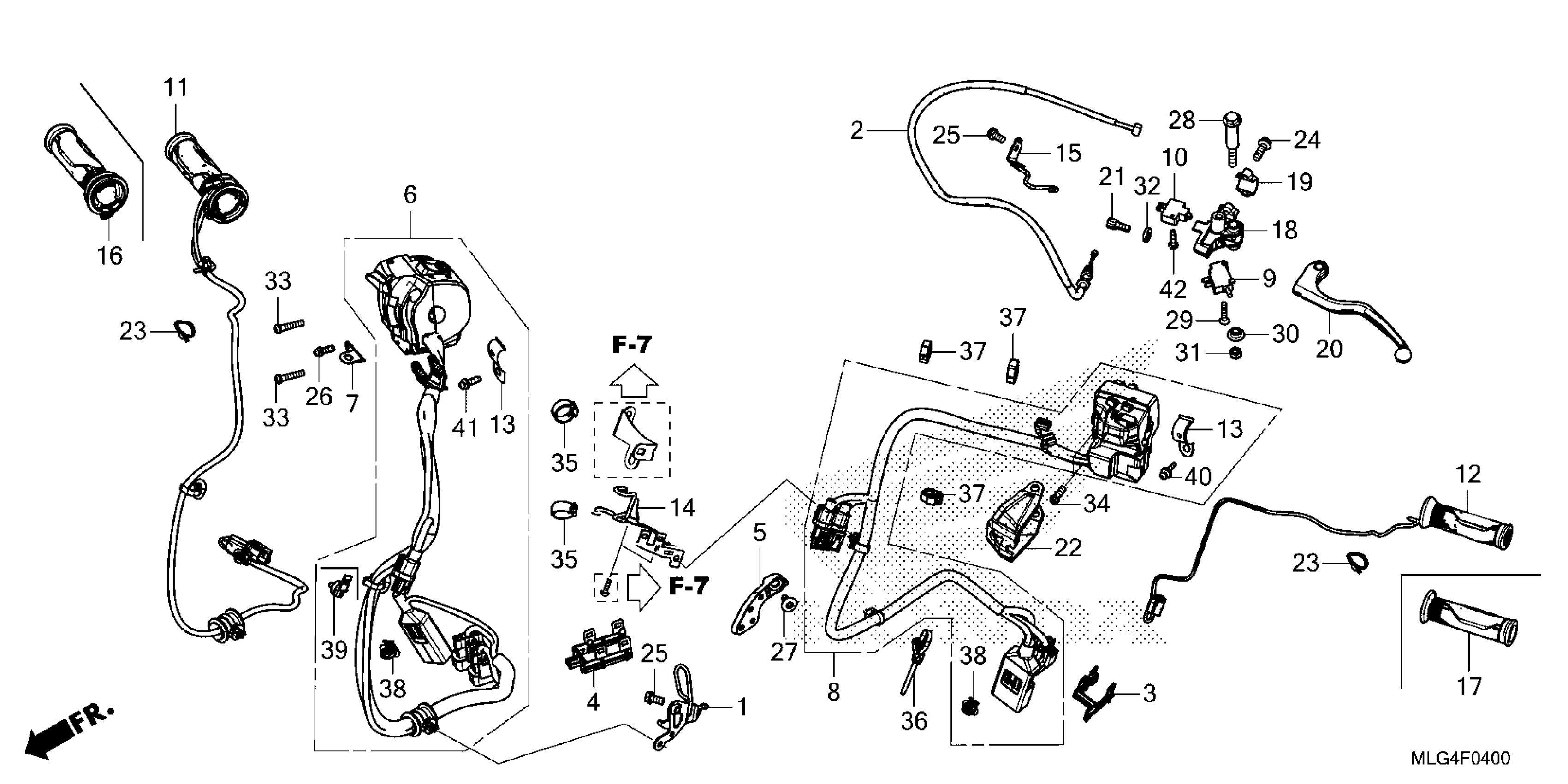 Honda CRF1100A43AC (22) MOTORCYCLE, JPN, VIN# JH2SD102-NK200001 HANDLE LEVER@SWITCH@CABLE (MT) Diagram