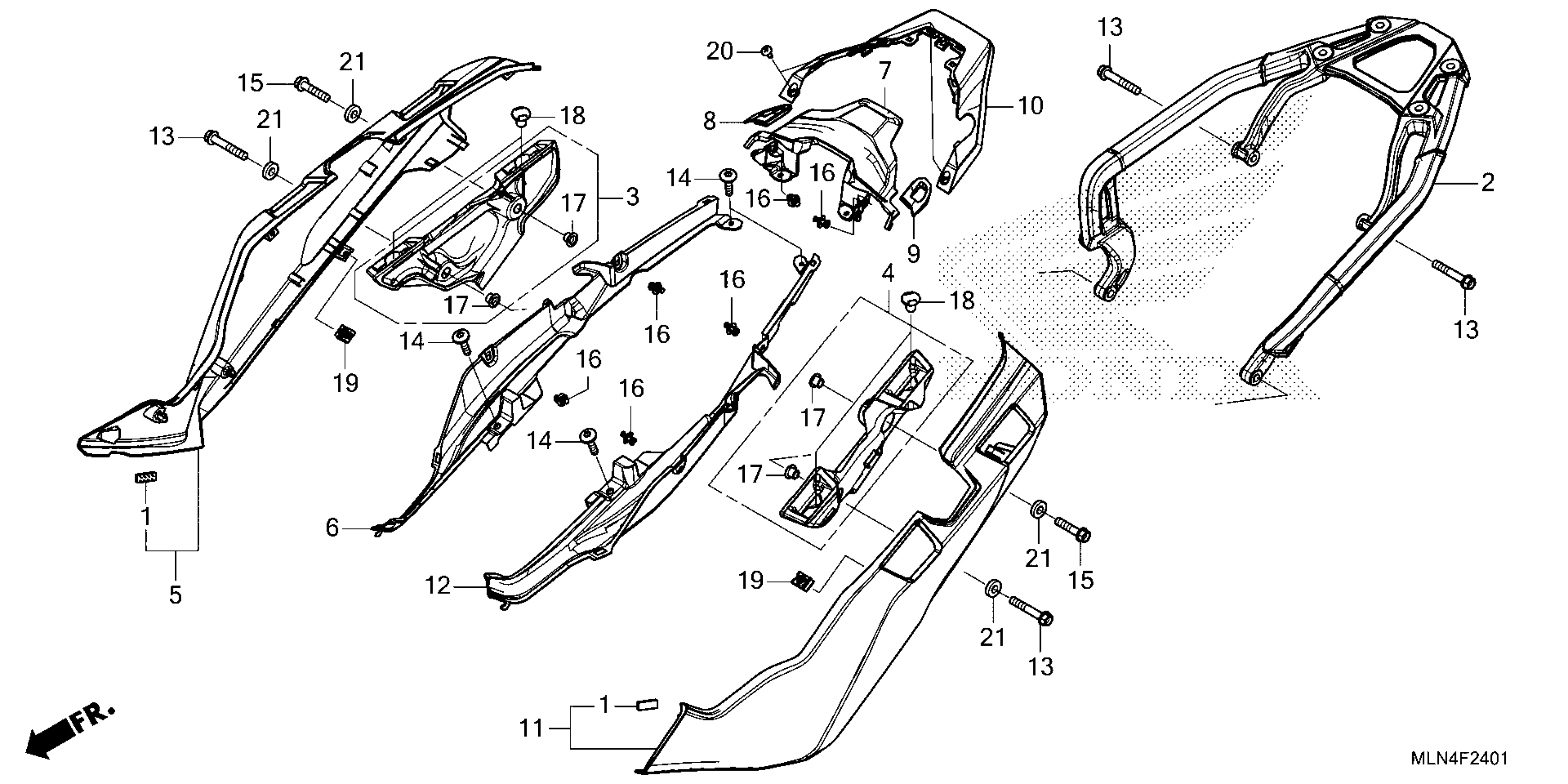 Honda CRF1100A43AC (24) MOTORCYCLE, JPN, VIN# JH2SD15B-RK000001 TO JH2SD15B-RK099999 SIDE COVER@REAR CARRIER (CRF1100A4/D4) Diagram