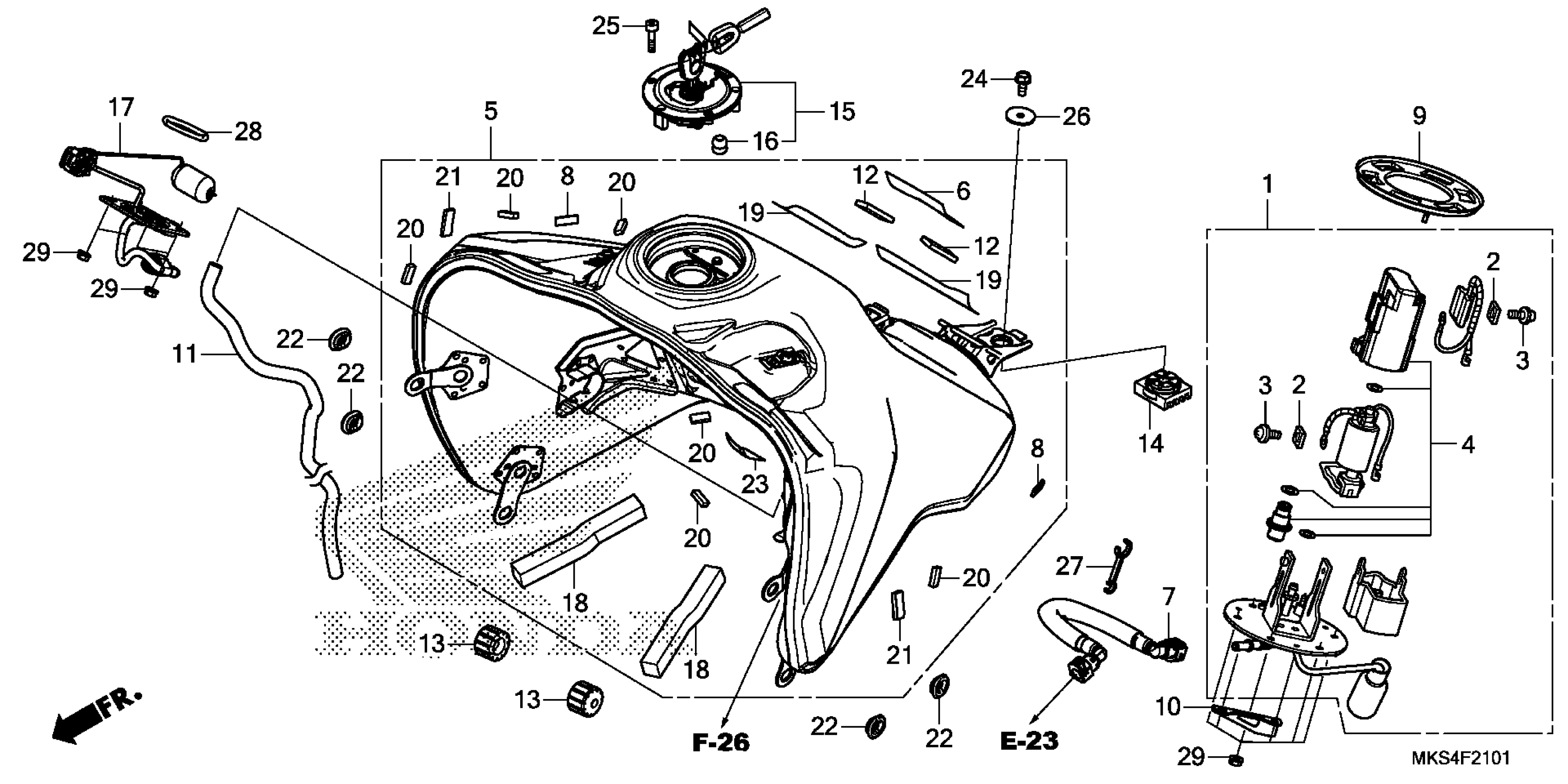 Honda CRF1100A4AC (21) MOTORCYCLE, JPN, VIN# JH2SD102-MK100001 FUEL TANK@FUEL PUMP (2) Diagram