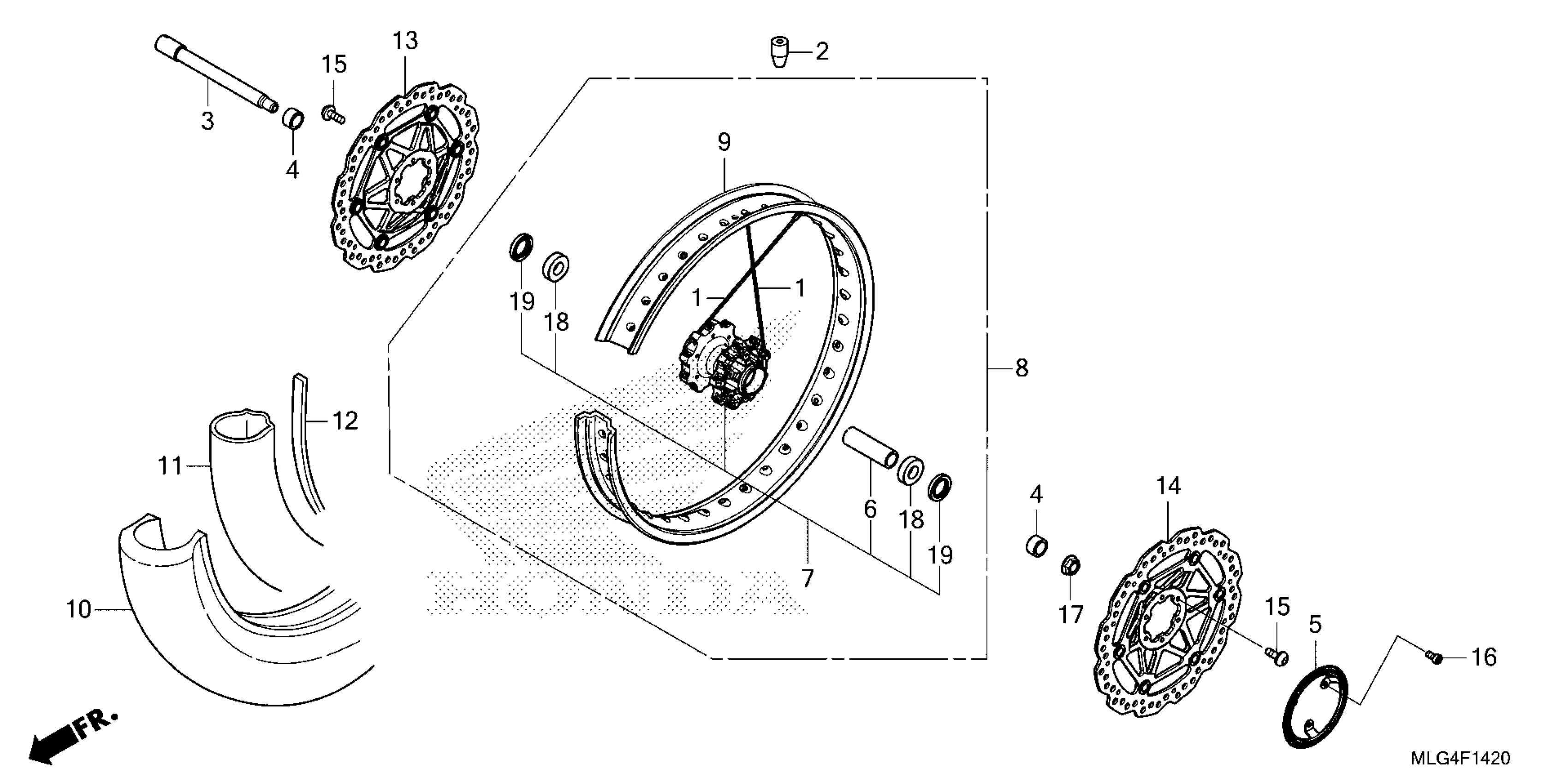 Honda CRF1100D2AC (22) MOTORCYCLE, JPN, VIN# JH2SD100-NK200001 TO JH2SD100-NK299999 FRONT WHEEL (1) Diagram