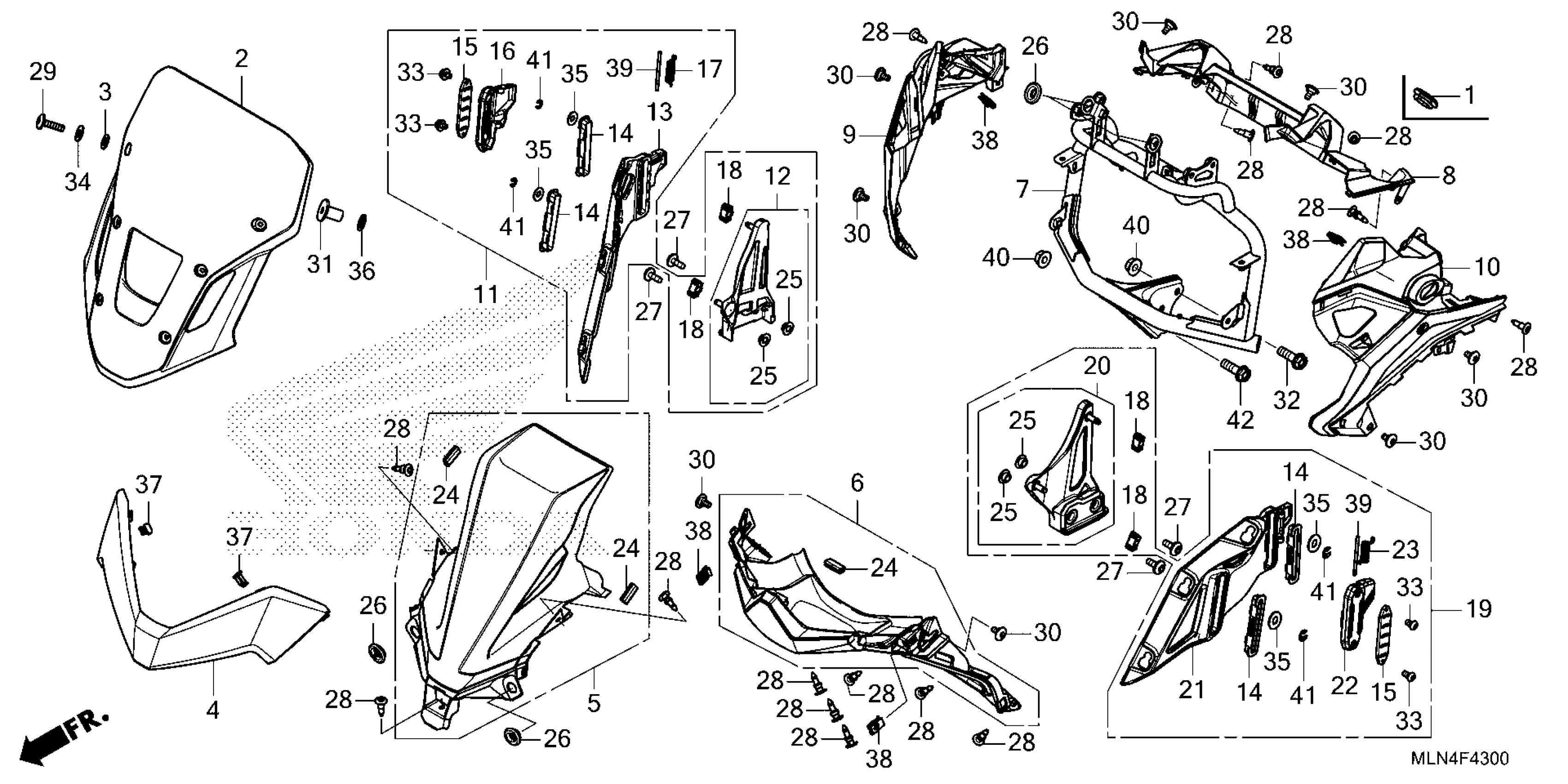 Honda CRF1100DAC (25) MOTORCYCLE, JPN, VIN# JH2SD155-SK100001 TO JH2SD155-SK199999 FRONT COVER (CRF1100A/D) Diagram