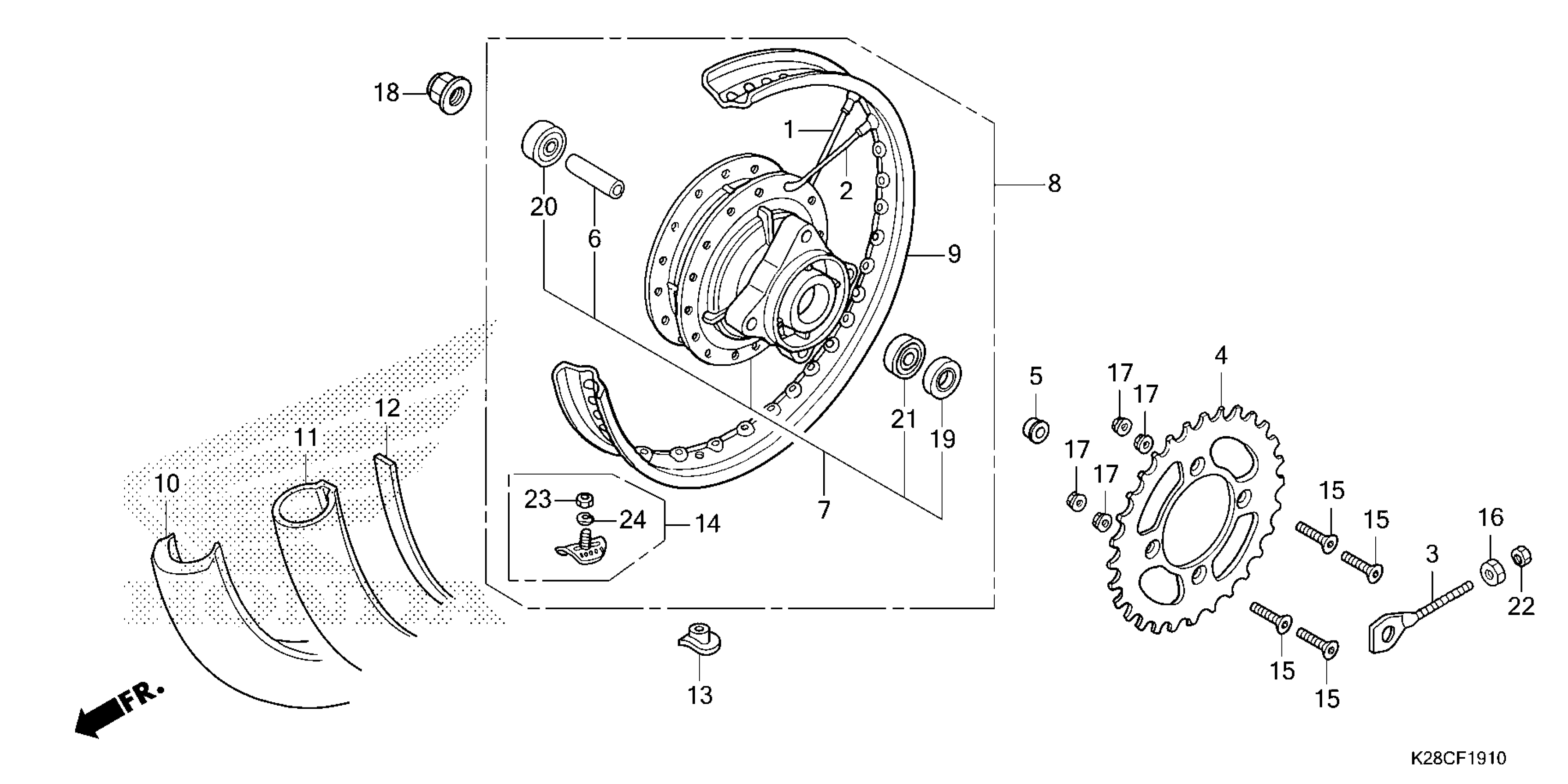 Honda CRF125FA (26) MOTORCYCLE, CHN, VIN# LALJE034-T3800001 TO LALJE034-T3899999 REAR WHEEL Diagram