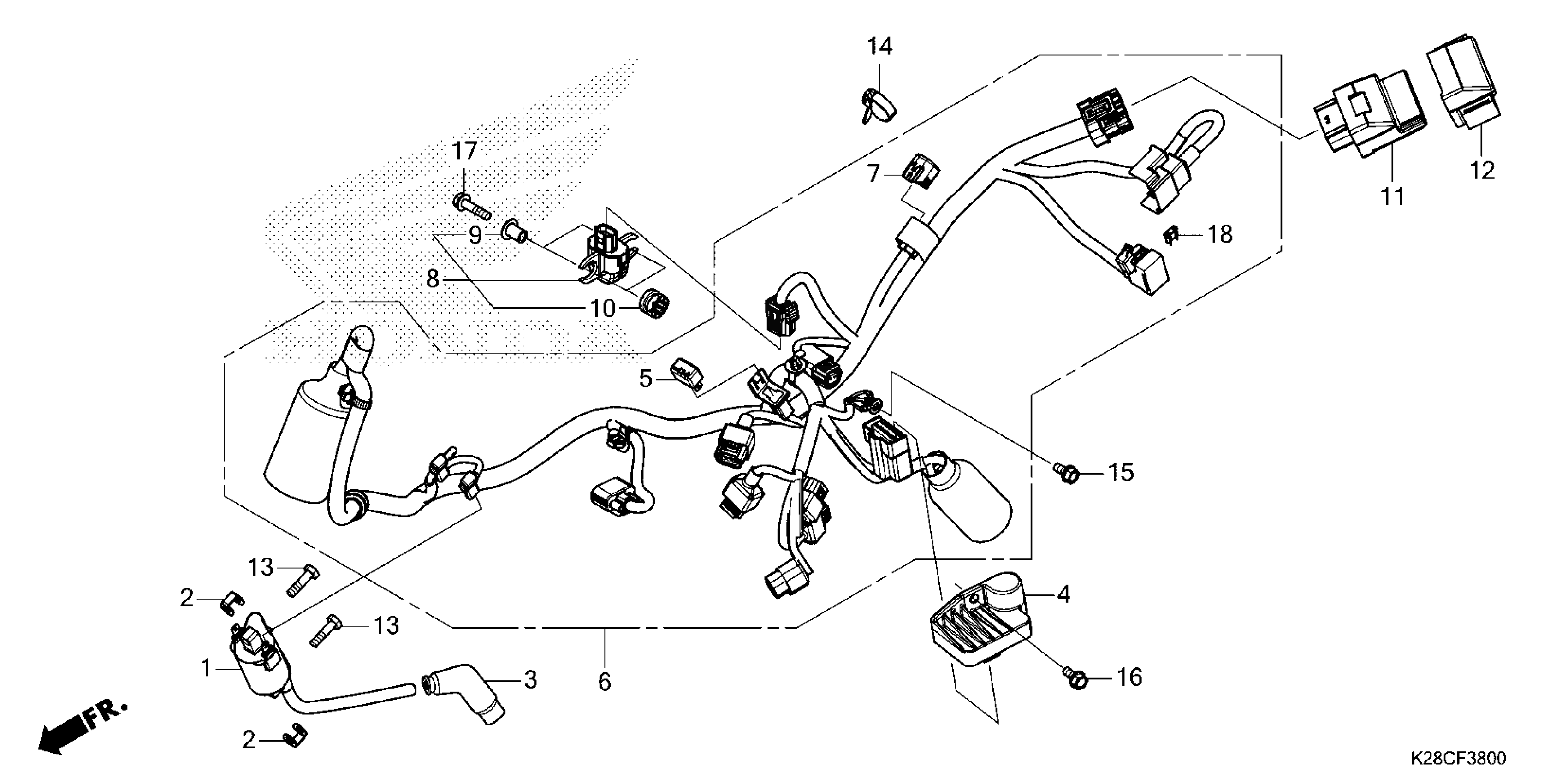 Honda CRF125FA (26) MOTORCYCLE, CHN, VIN# LALJE034-T3800001 TO LALJE034-T3899999 WIRE HARNESS Diagram