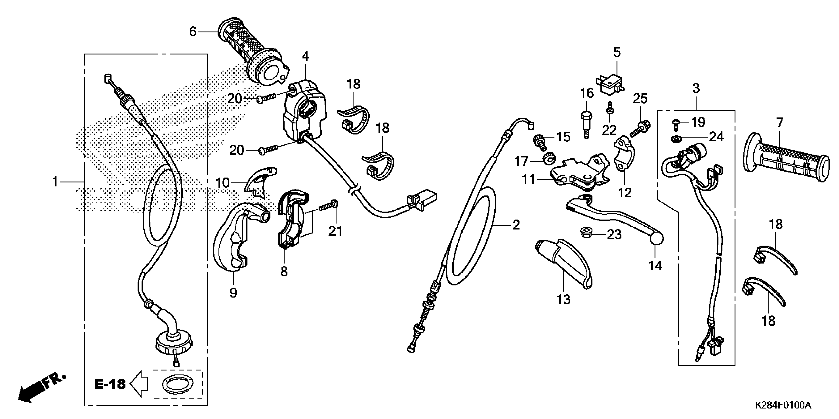 Honda CRF125FAC (17) CRF125F, CHN, VIN# LALJE031-H3300001 HANDLE LEVER + SWITCH + CABLE Diagram