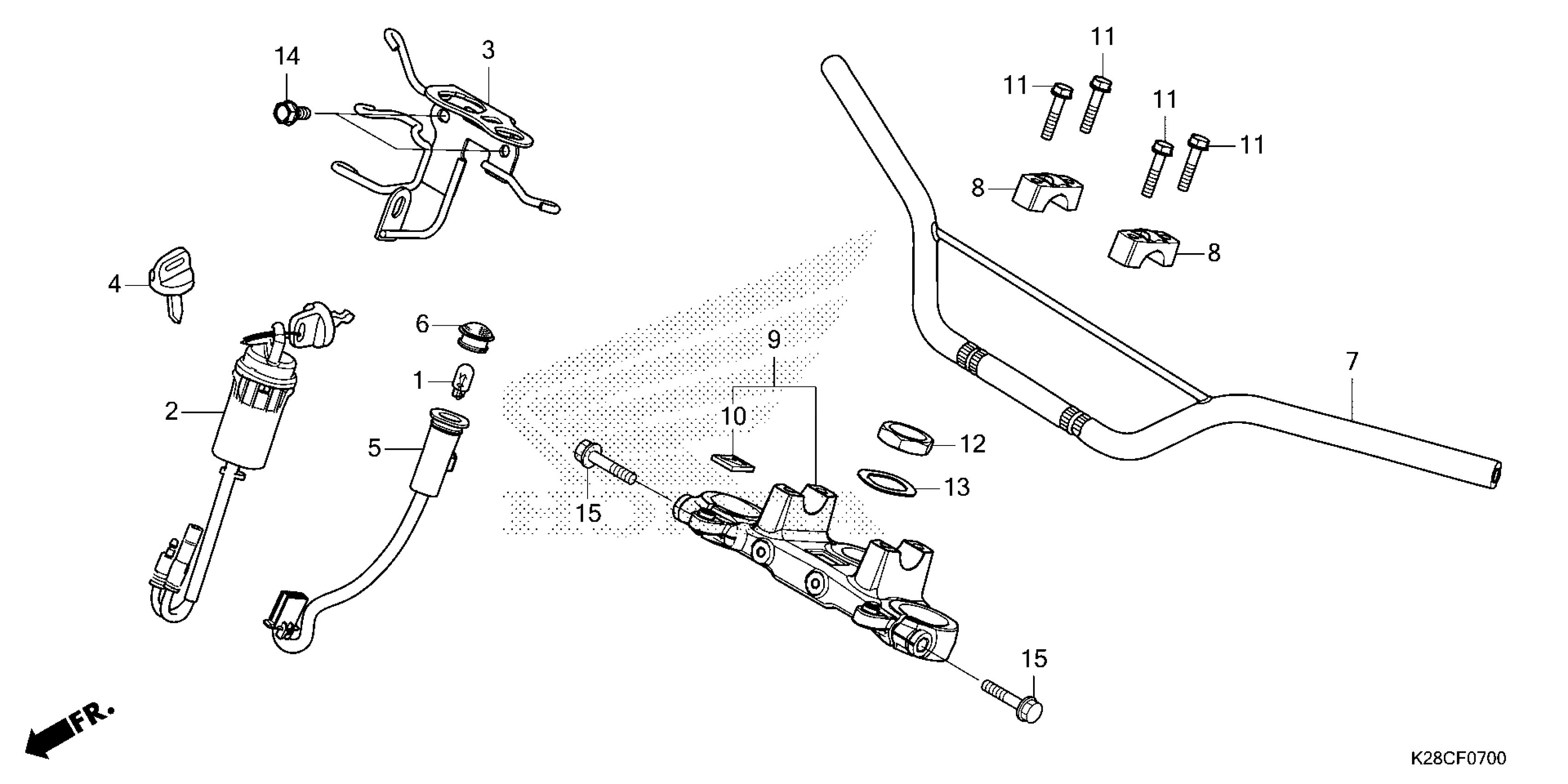 Honda CRF125FAC (26) MOTORCYCLE, CHN, VIN# LALJE031-T3300001 TO LALJE031-T3399999 HANDLEBAR Diagram