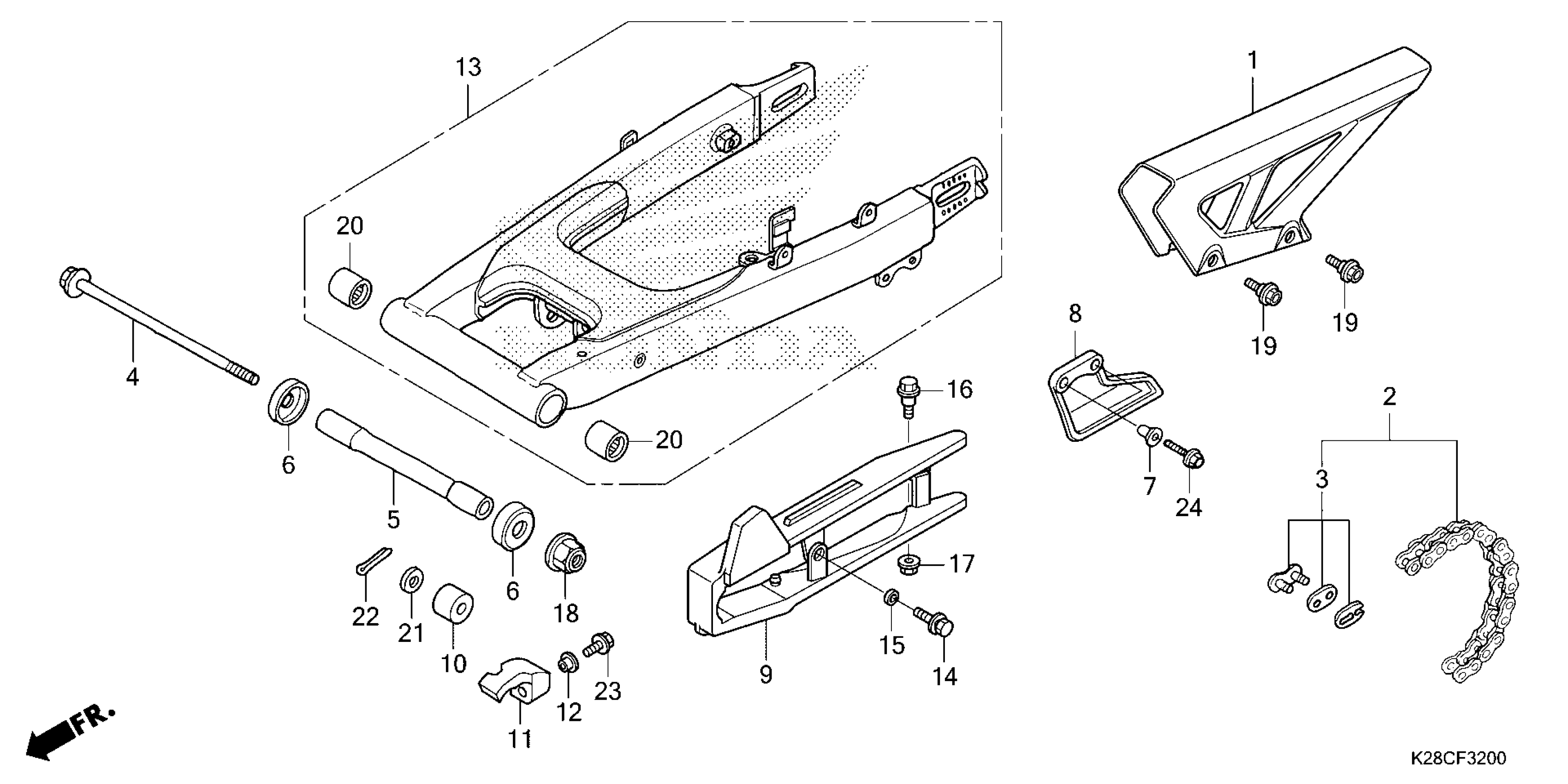 Honda CRF125FAC (26) MOTORCYCLE, CHN, VIN# LALJE031-T3300001 TO LALJE031-T3399999 SWINGARM Diagram