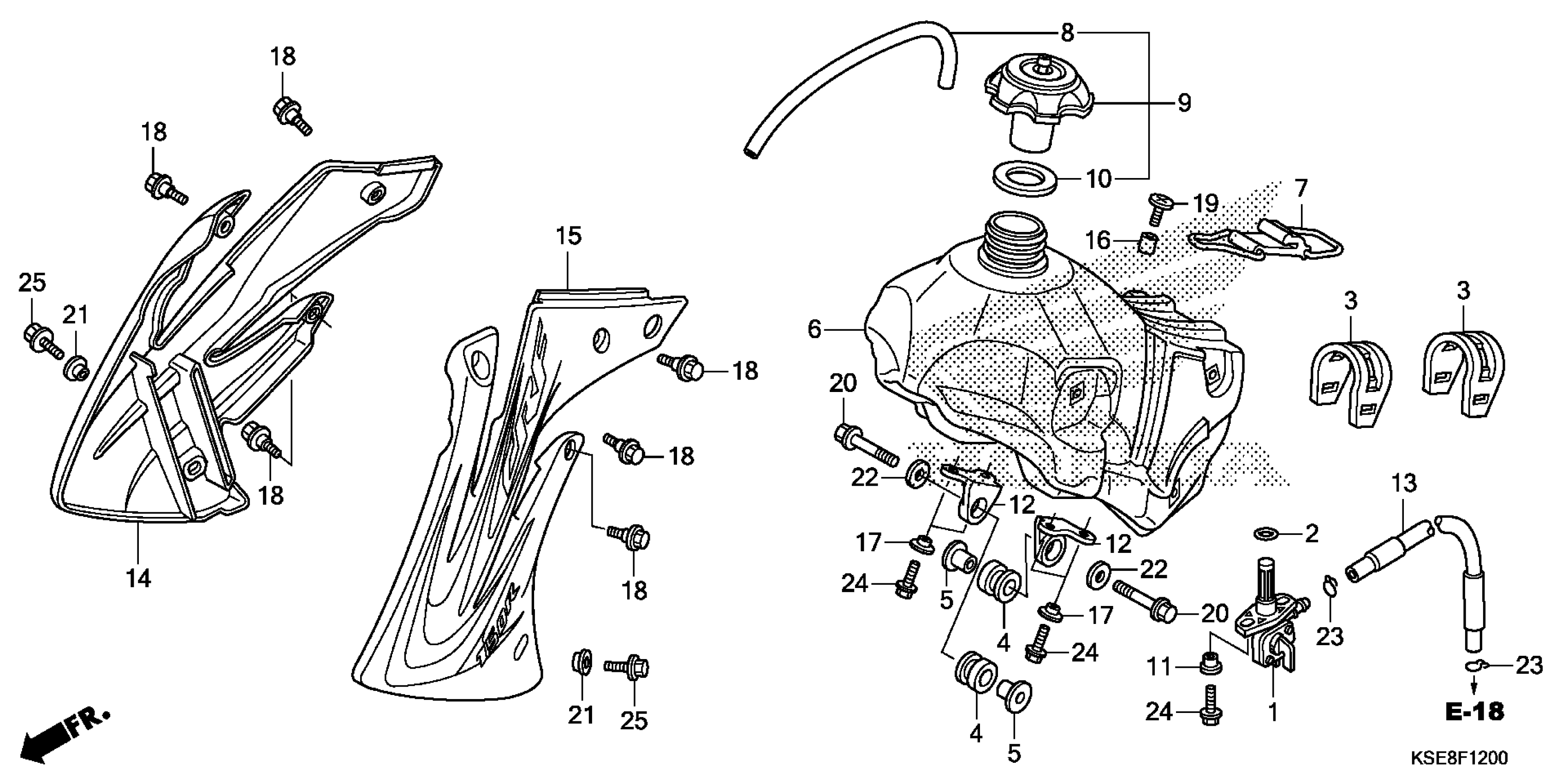 Honda CRF150RBAC (18) MOTORCYCLE, JPN, VIN# JH2KE03C-JK900001 TO JH2KE03C-JK999999 FUEL TANK Diagram