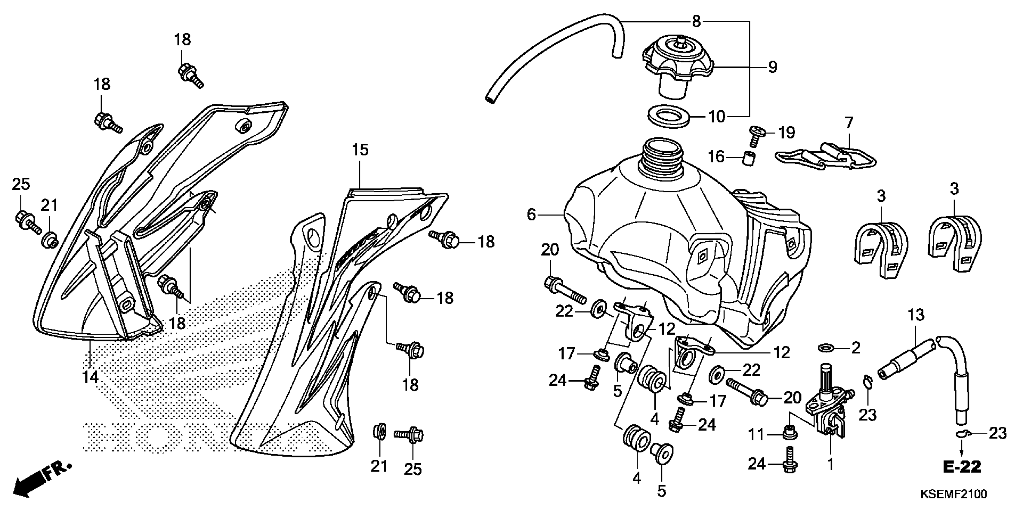 Honda CRF150RBAC (23) MOTORCYCLE, JPN, VIN# JH2KE03C-PK500001 TO JH2KE03C-PK599999 FUEL TANK Diagram