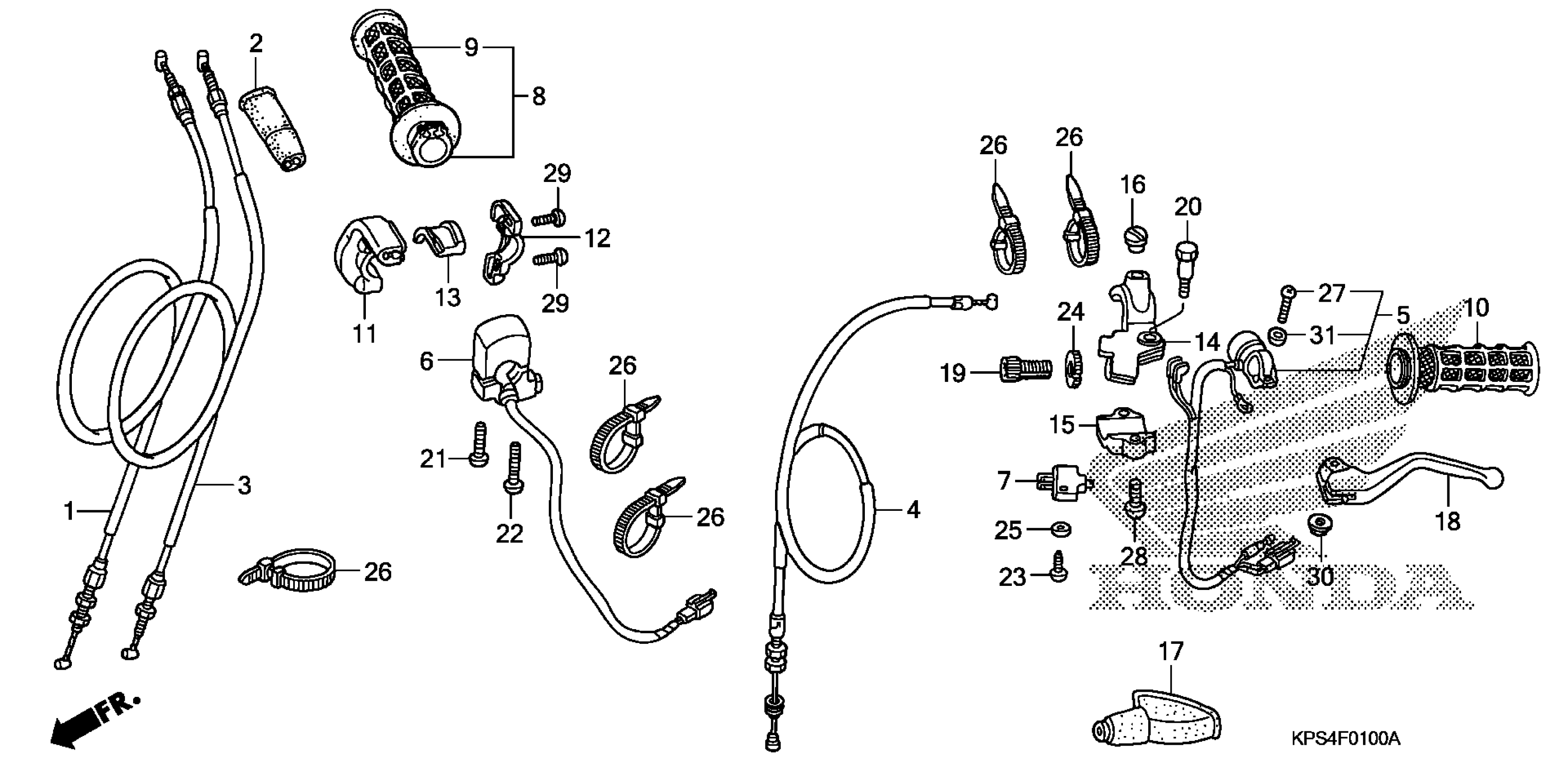 Honda CRF230FA (06) MOTORCYCLE, BRA, VIN# 9C2ME090-6R000001 TO 9C2ME090-6R099999 HANDLE LEVER + SWITCH + CABLE Diagram