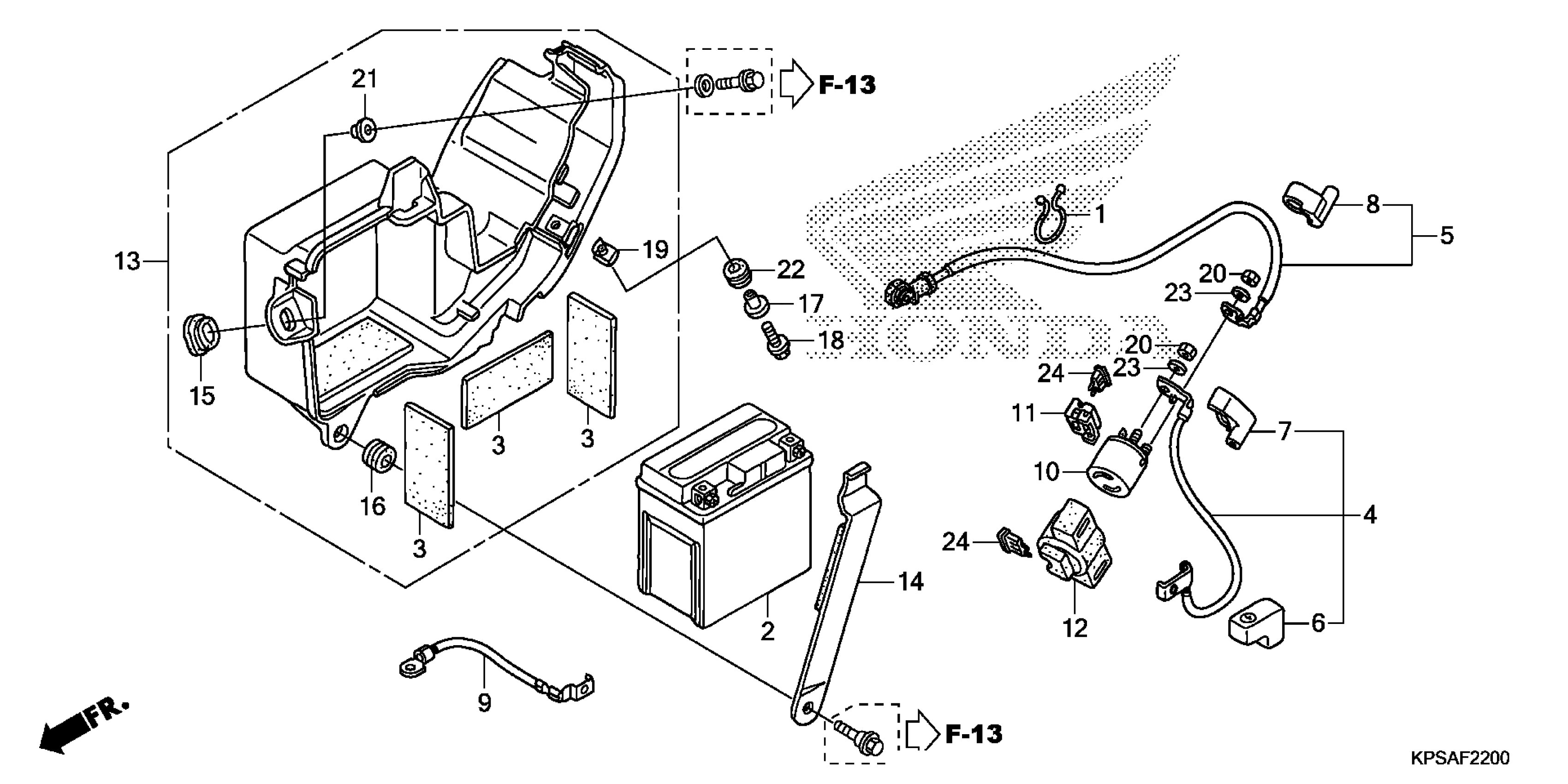 Honda CRF230FAC (13) CRF230F, BRA, VIN# 9C2ME091-DR100001 TO 9C2ME091-DR199999 BATTERY (1) Diagram