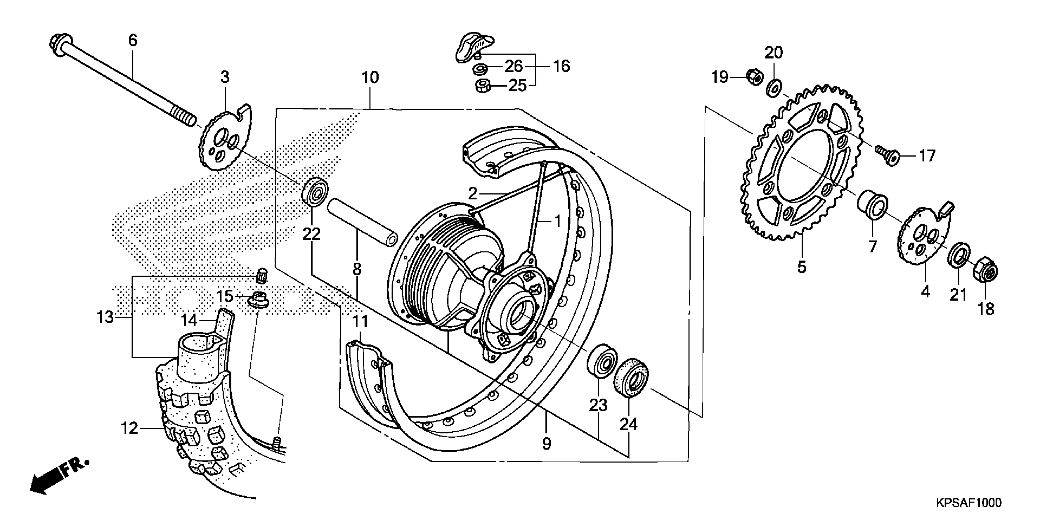Honda CRF230FAC (19) MOTORCYCLE, BRA, VIN# 9C2ME09C-KR100001 REAR WHEEL Diagram