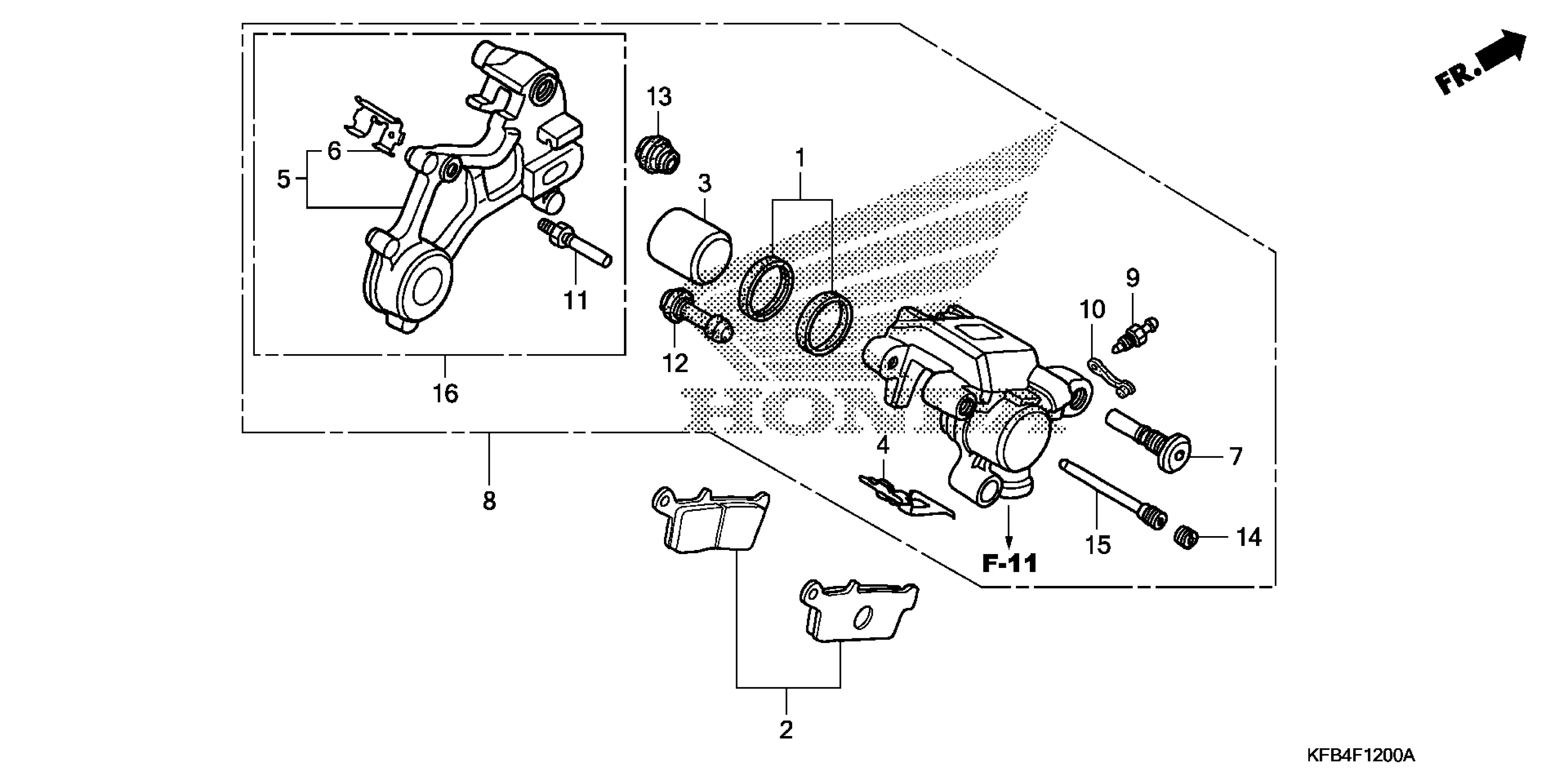 Honda CRF230LAC (08) MOTORCYCLE, JPN, VIN# JH2MD371-8K000001 TO JH2MD371-8K099999 REAR BRAKE CALIPER Diagram