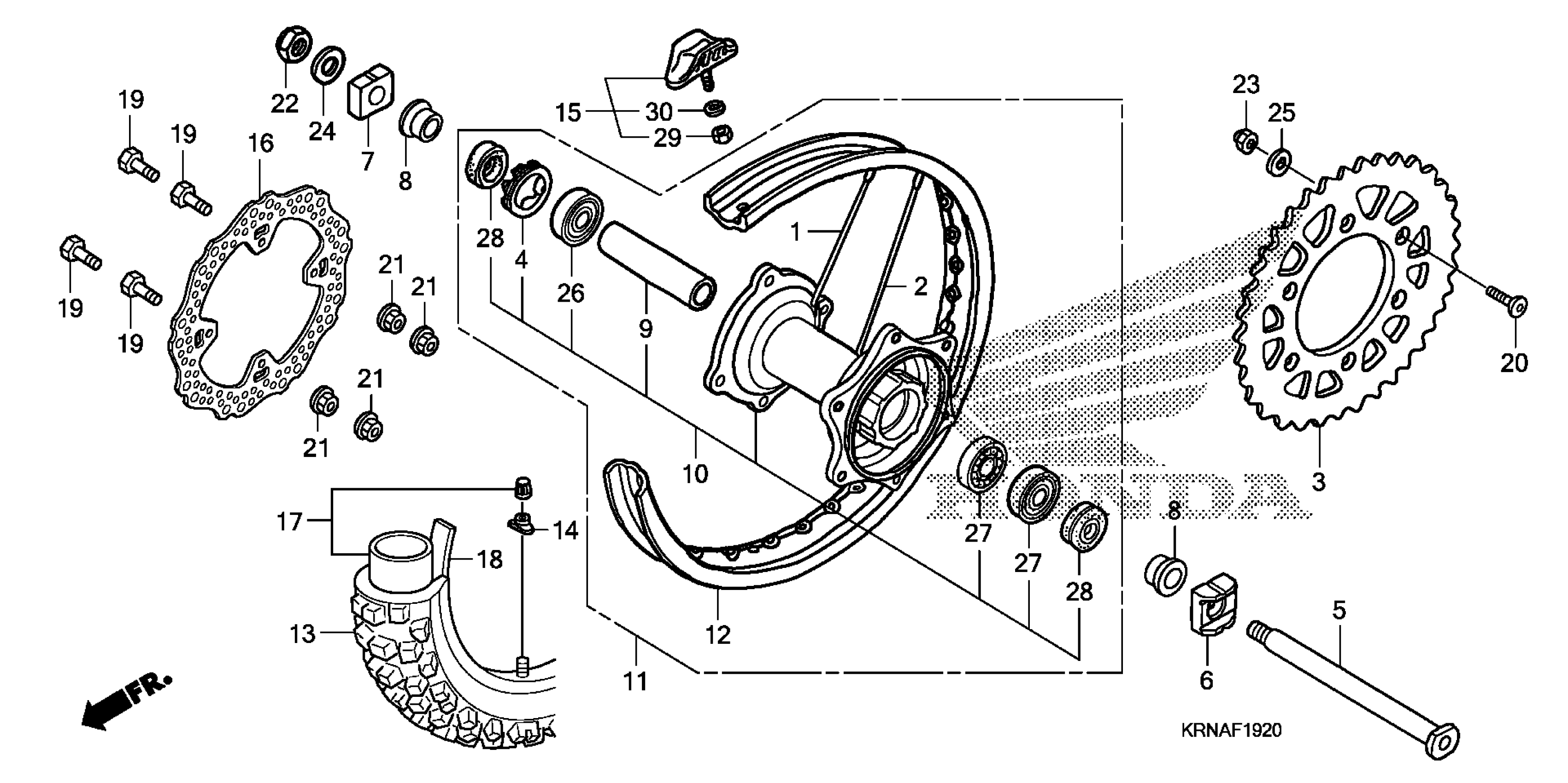 Honda CRF250RA (11) CRF250R, JPN, VIN# JH2ME103-BK700001 TO JH2ME103-BK799999 REAR WHEEL Diagram