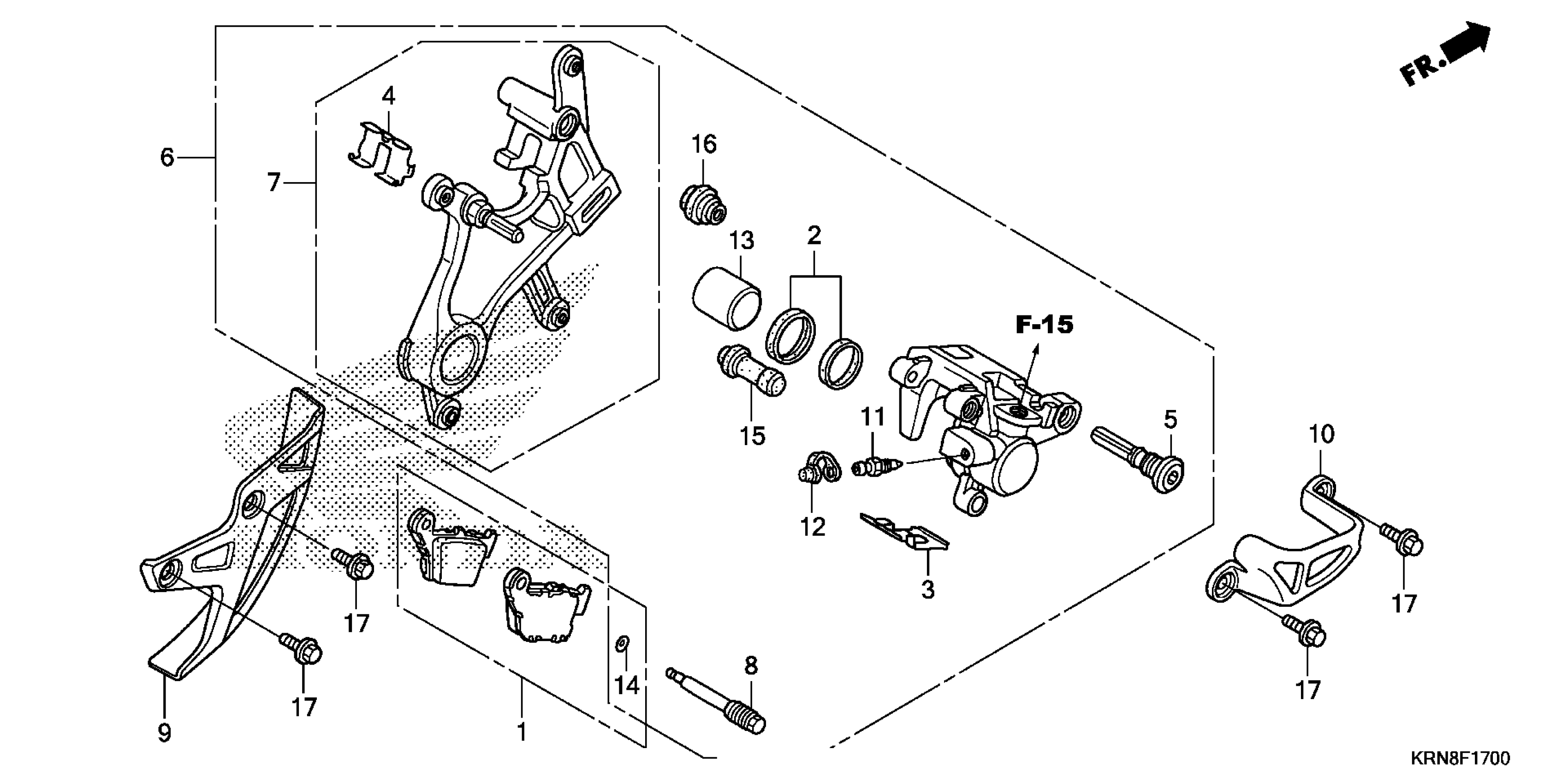 Honda CRF250RAC (16) CRF250R, JPN, VIN# JH2ME103-GK300001 TO JH2ME103-GK399999 REAR BRAKE CALIPER Diagram