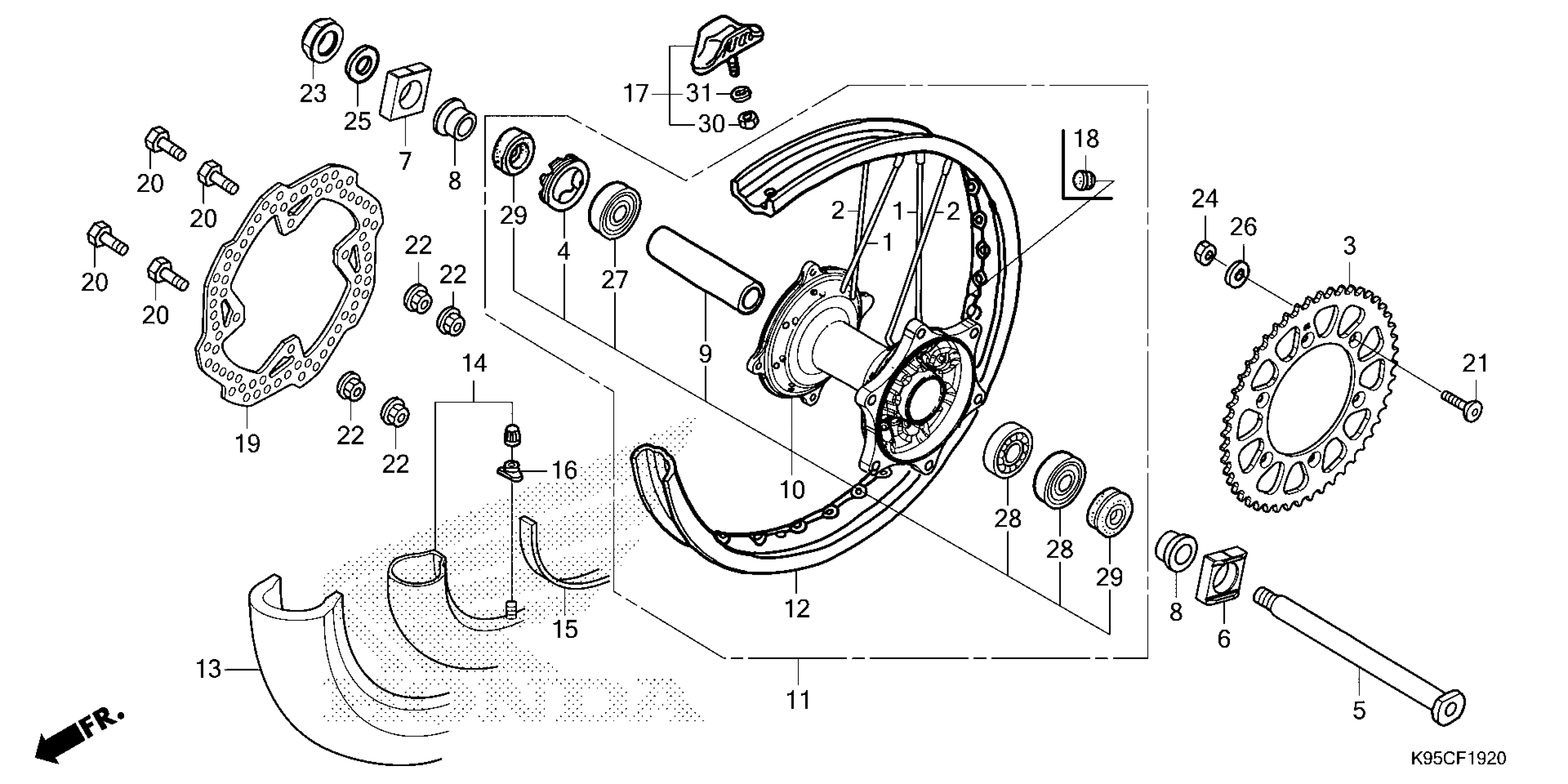 Honda CRF250RXAC (26) MOTORCYCLE, JPN, VIN# JH2ME12C-TK700001 TO JH2ME12C-TK799999 REAR WHEEL Diagram