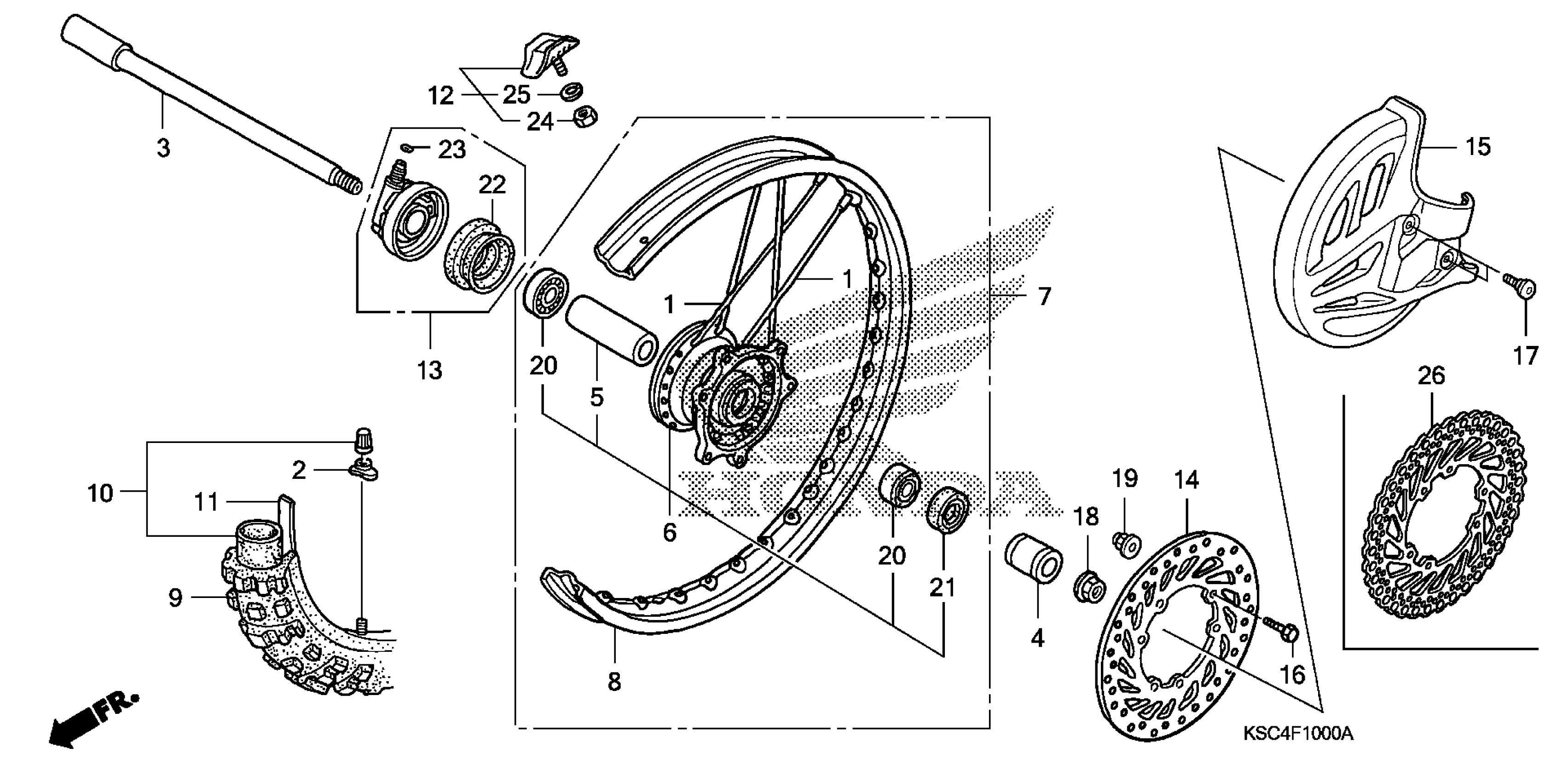 Honda CRF250XA (07) MOTORCYCLE, JPN, VIN# JH2ME110-7M300001 TO JH2ME110-7M309999 FRONT WHEEL Diagram