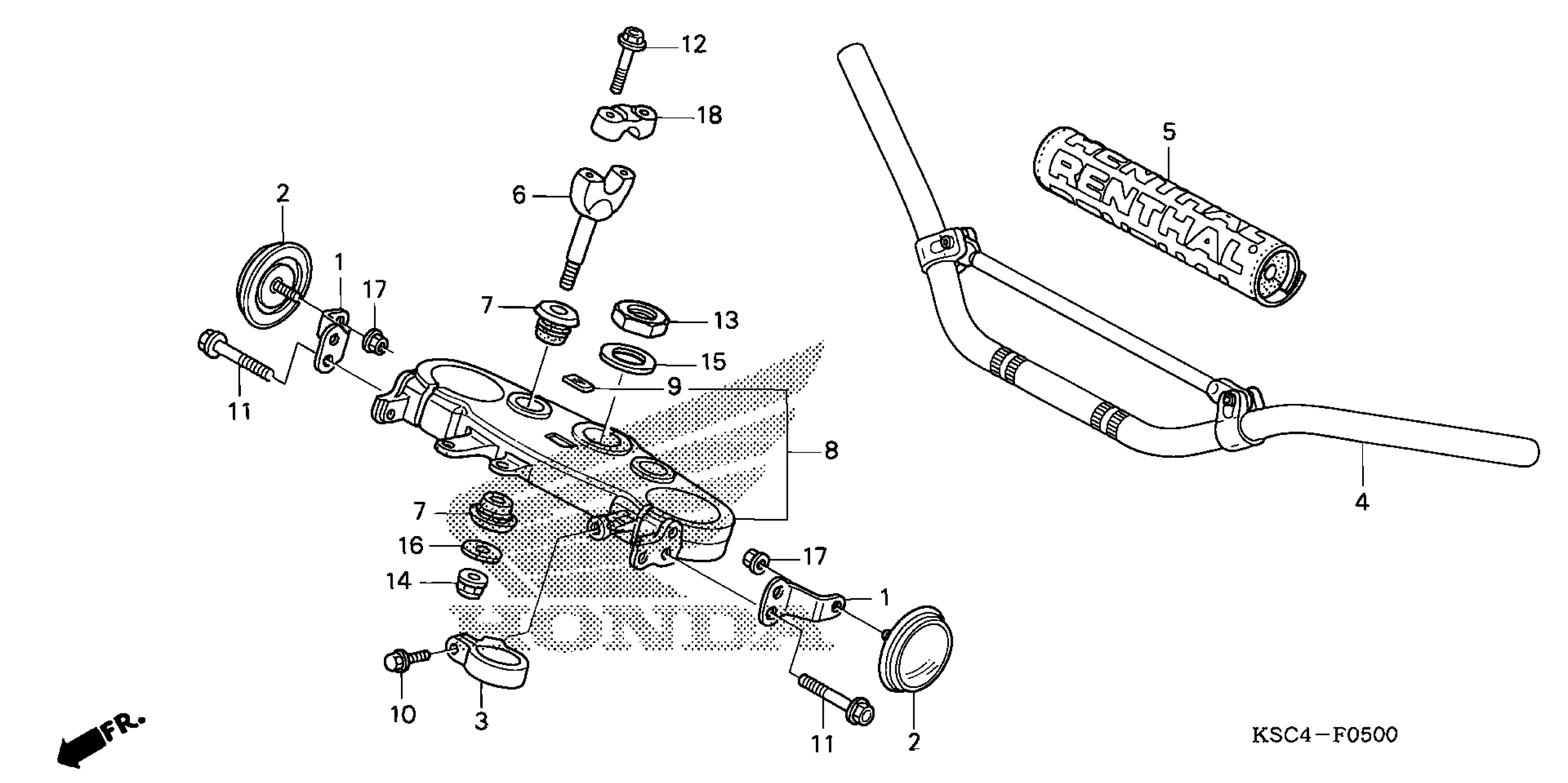 Honda CRF250XA (07) MOTORCYCLE, JPN, VIN# JH2ME110-7M300001 TO JH2ME110-7M309999 HANDLEBAR + TOP BRIDGE Diagram