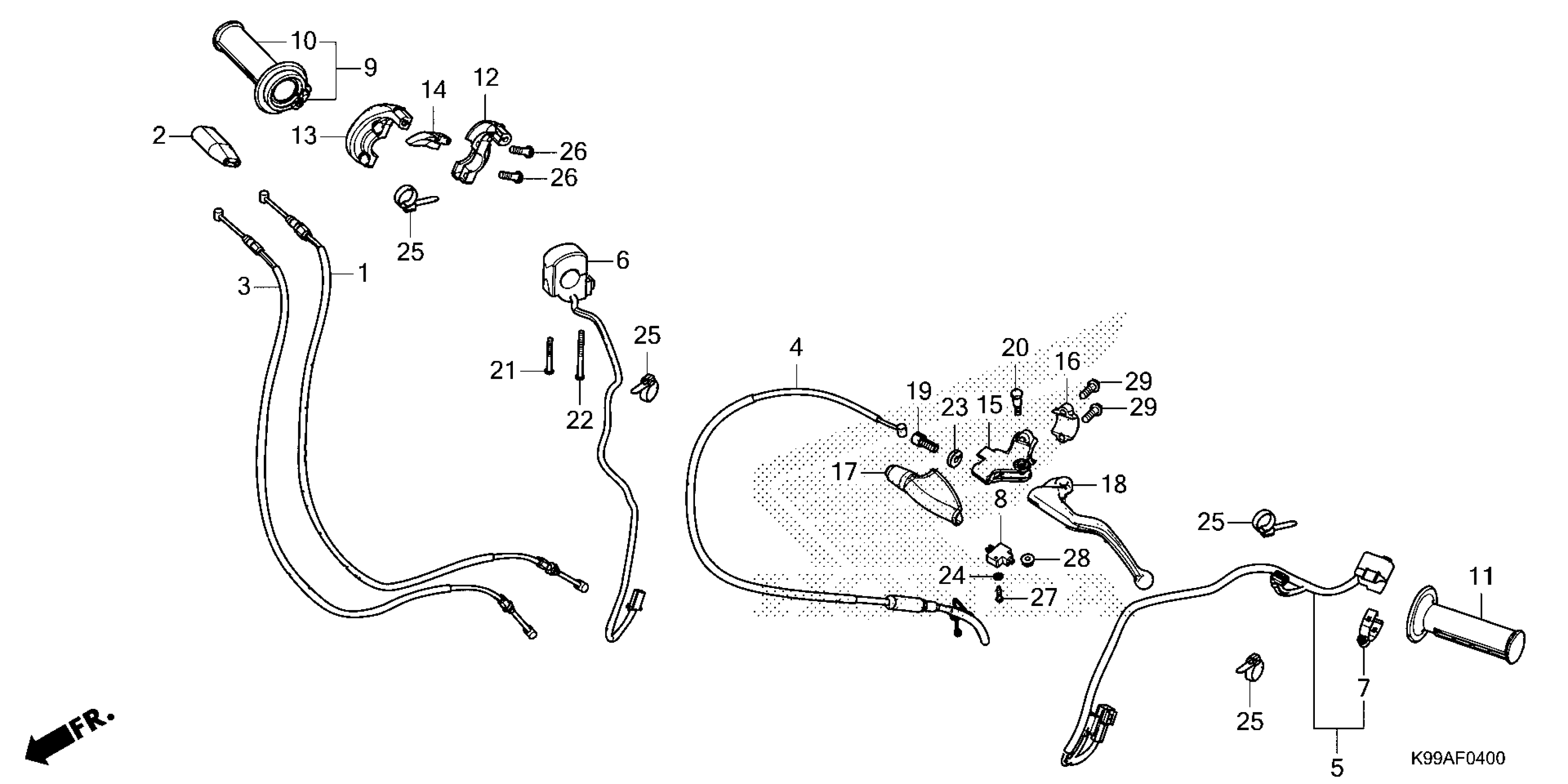 Honda CRF300FA (26) MOTORCYCLE, BRA, VIN# 9C2NE074-TR400001 TO 9C2NE074-TR499999 HANDLE LEVER@SWITCH@CABLE Diagram