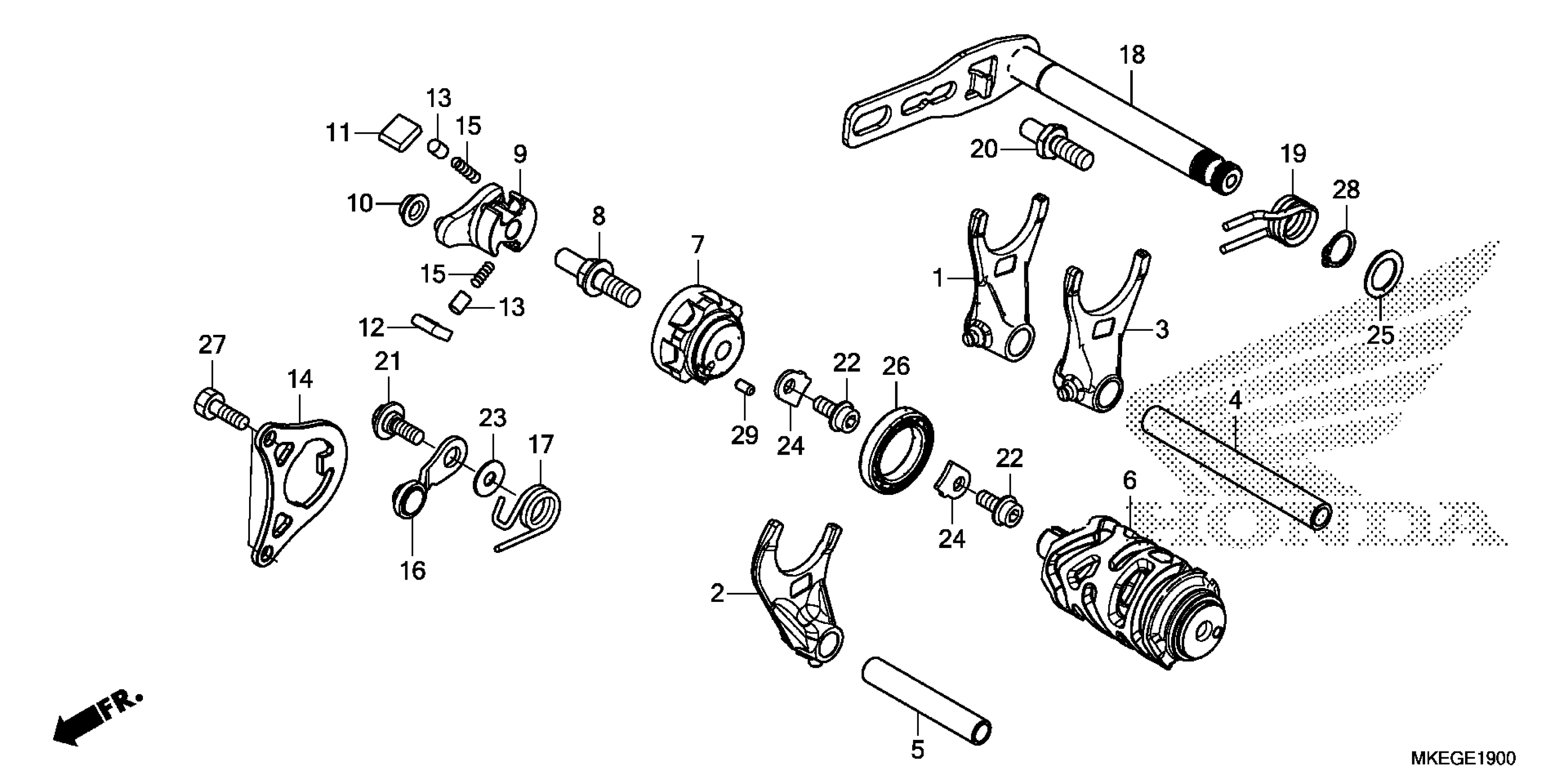 Honda CRF450LAC (19) MOTORCYCLE, JPN, VIN# JH2PD111-KK000001 TO JH2PD111-KK099999 GEARSHIFT DRUM Diagram
