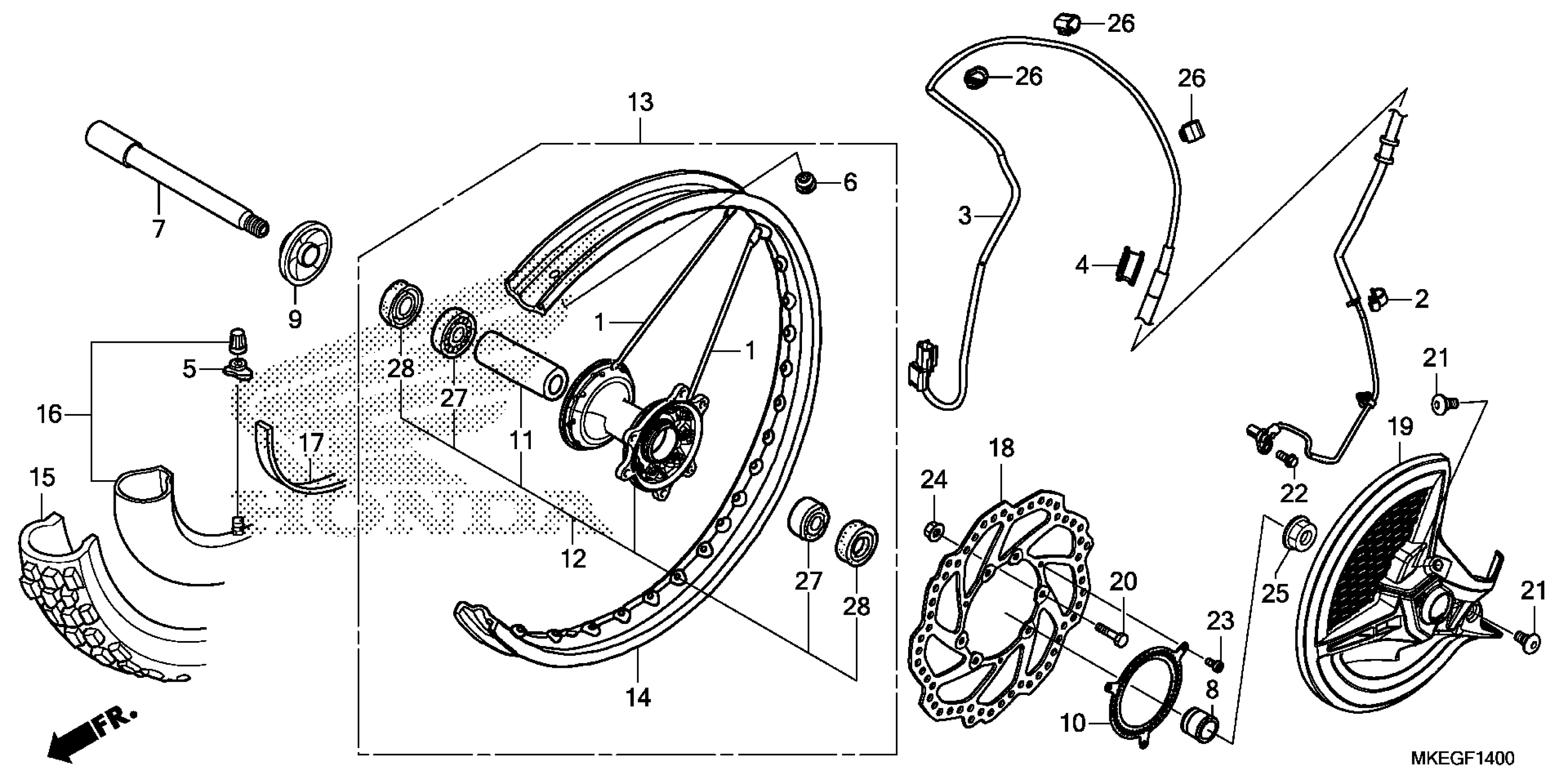 Honda CRF450LAC (20) MOTORCYCLE, JPN, VIN# JH2PD111-LK100001 FRONT WHEEL Diagram