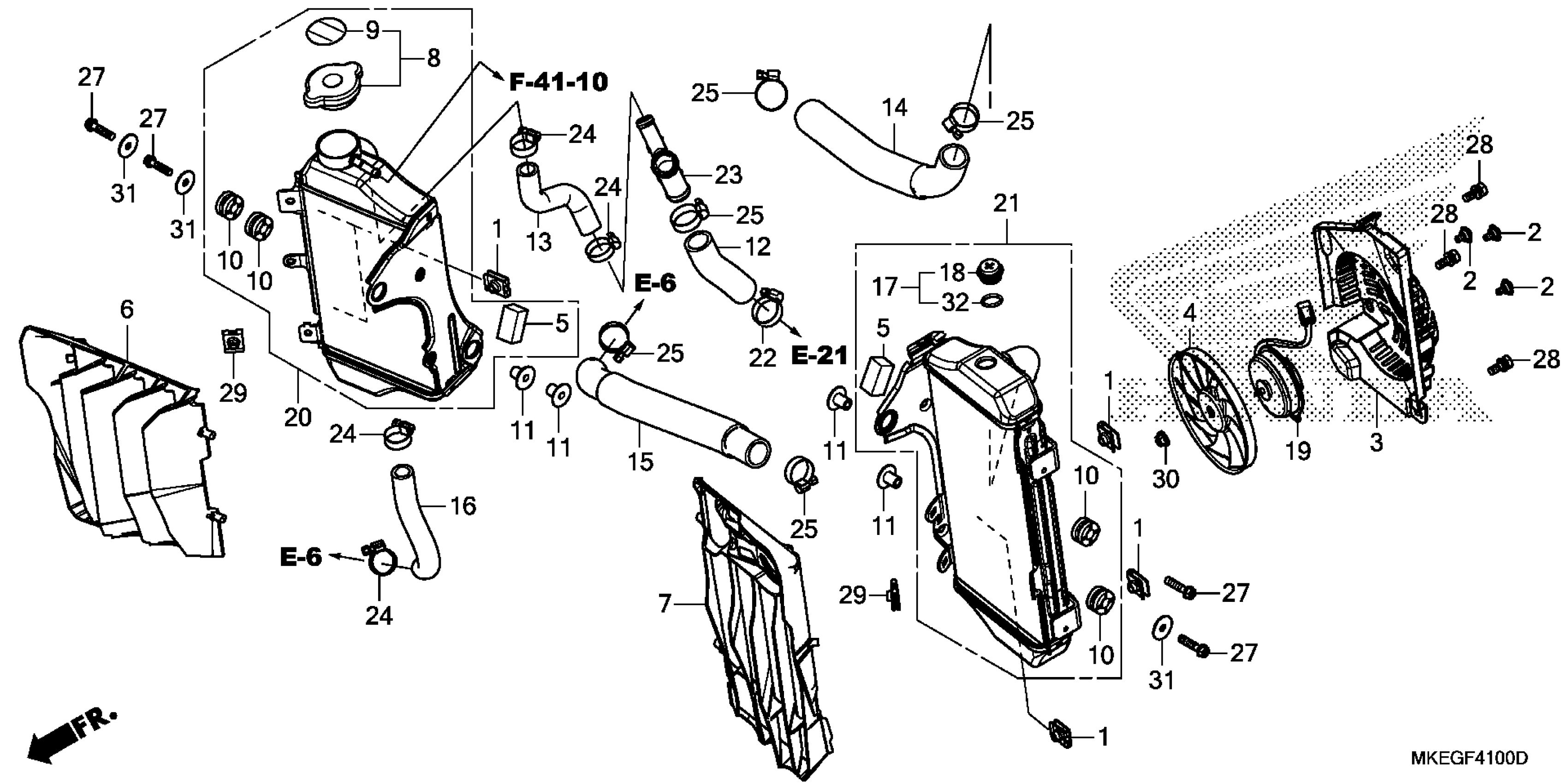 Honda CRF450LAC (20) MOTORCYCLE, JPN, VIN# JH2PD111-LK100001 RADIATOR Diagram
