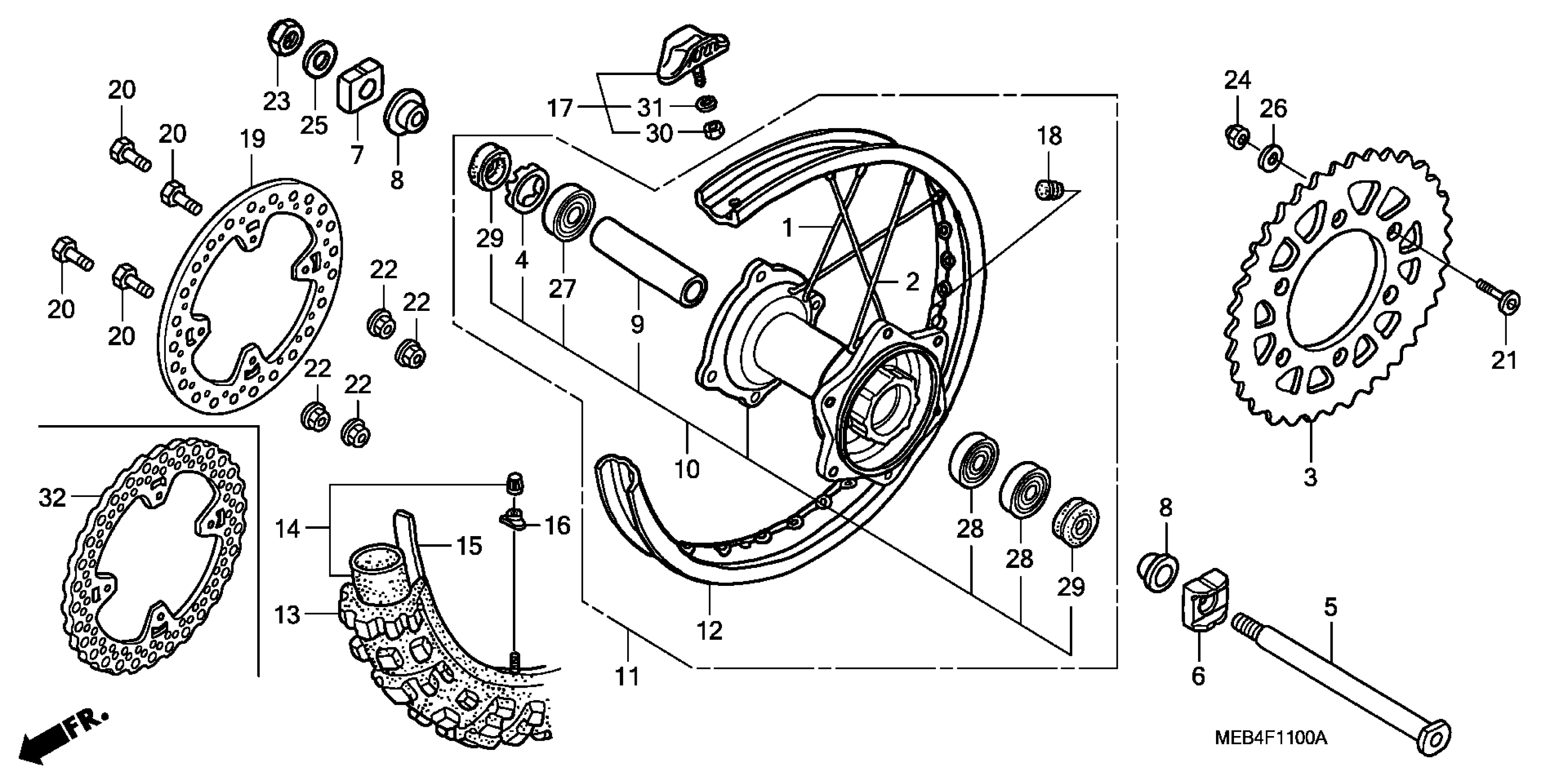 Honda CRF450R2A (08) MOTORCYCLE, JPN, VIN# JH2PE053-8M600001 TO JH2PE053-8M609999 REAR WHEEL Diagram