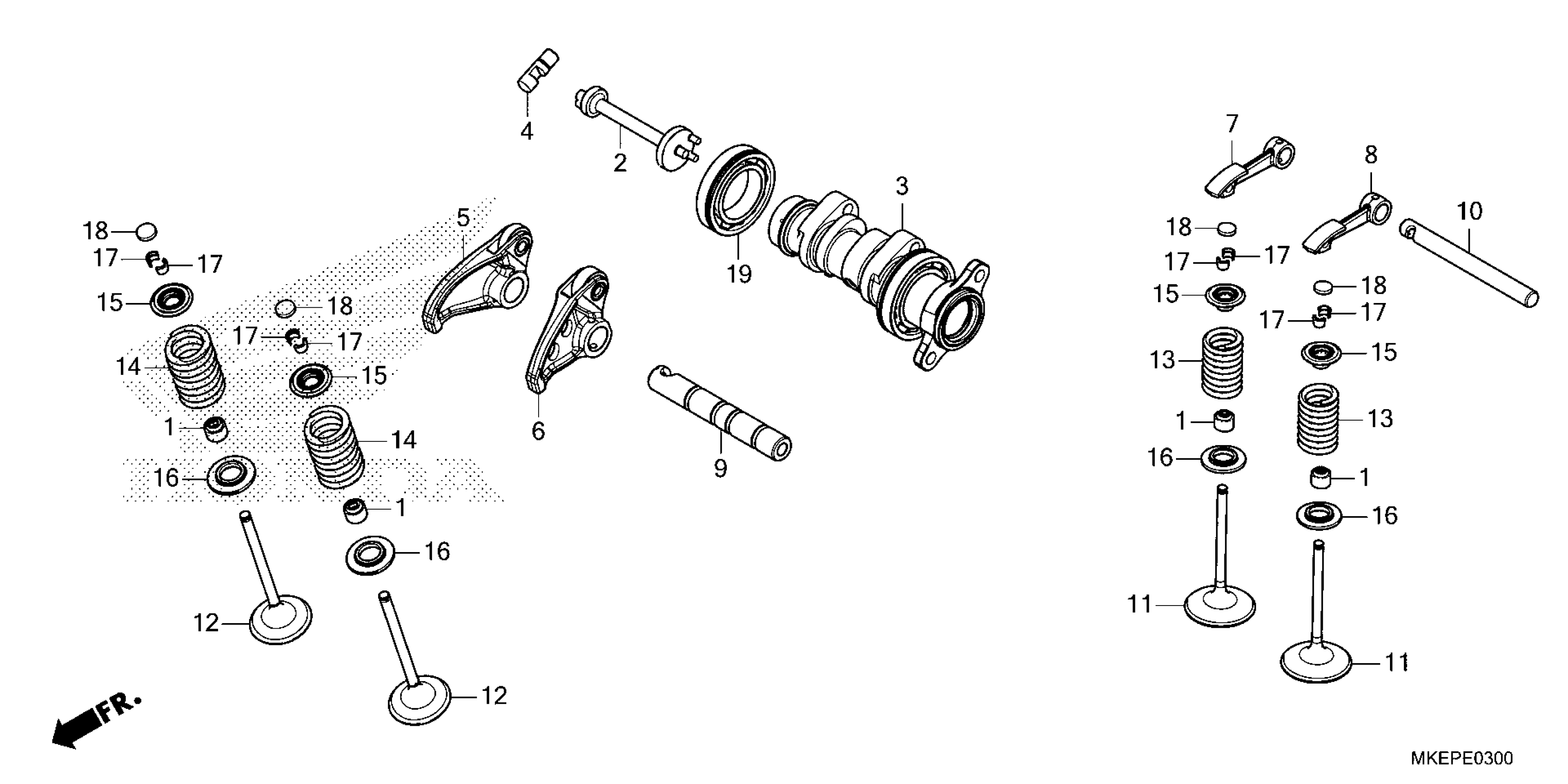 Honda CRF450R2AC (23) MOTORCYCLE, JPN, VIN# JH2PE07C-PK300001 TO JH2PE07C-PK399999 CAMSHAFT@VALVE Diagram