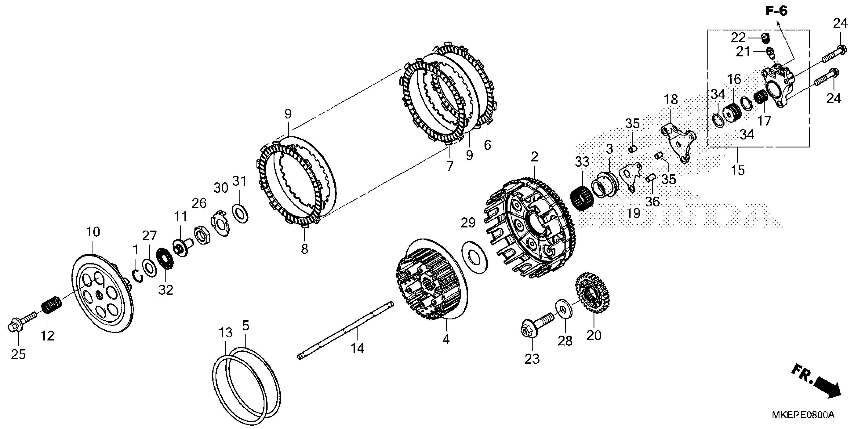 Honda CRF450R2AC (23) MOTORCYCLE, JPN, VIN# JH2PE07C-PK300001 TO JH2PE07C-PK399999 CLUTCH Diagram