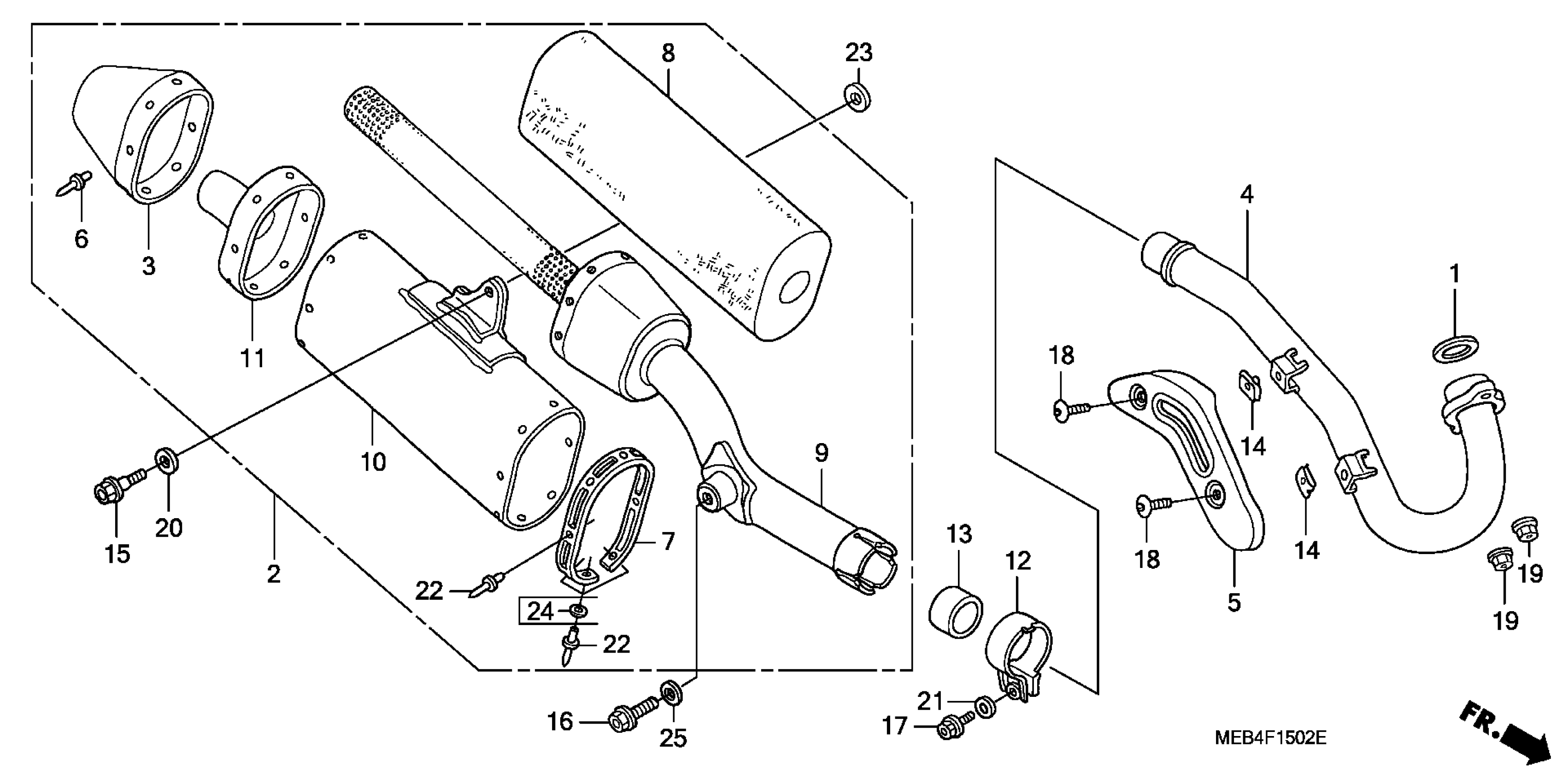 Honda CRF450RA (05) MOTORCYCLE, JPN, VIN# JH2PE053-5M300001 TO JH2PE053-5M319999 MUFFLER ('04-'05) Diagram